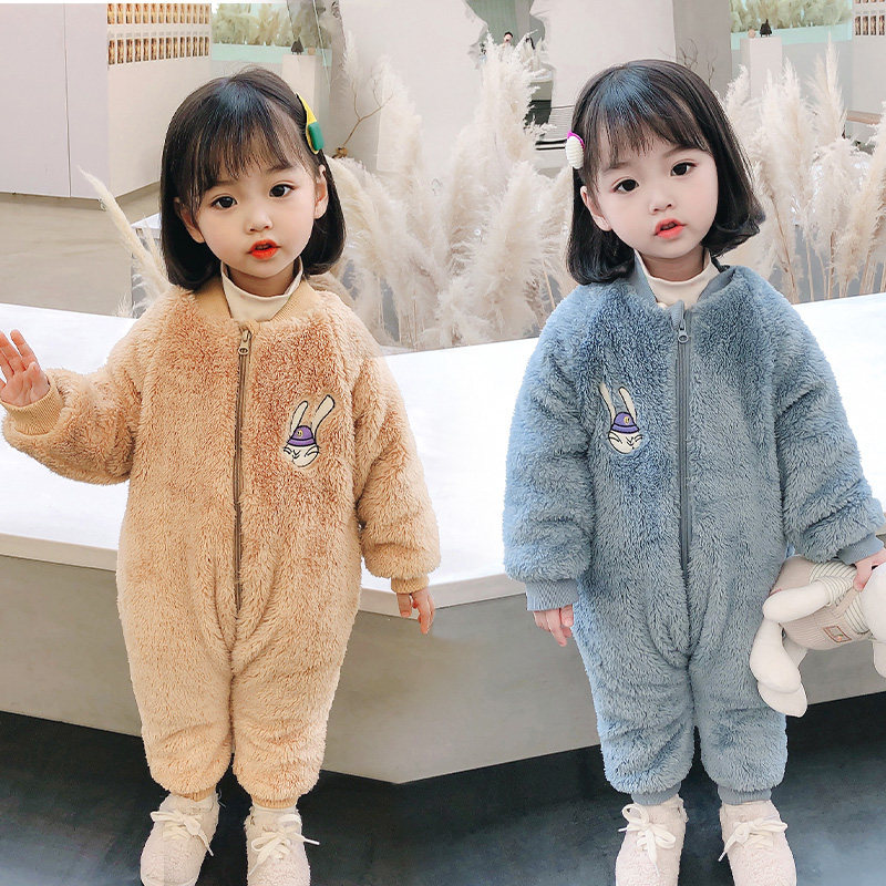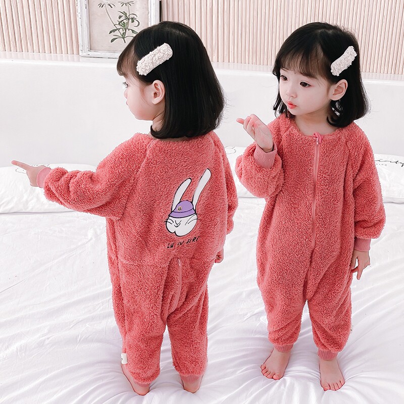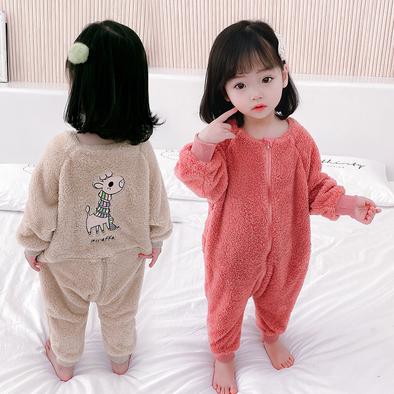 Girl's pyjamas 2021 new spring and autumn season long sleeves even body coral suede baby boy care children's home warmed up
