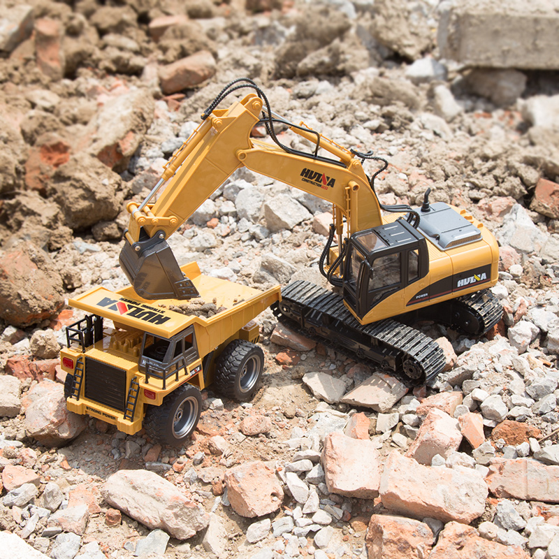 Huina 15-Channel remote control electric excavator alloy strange hand children's toy digging engineering vehicle hook four-wheel drive