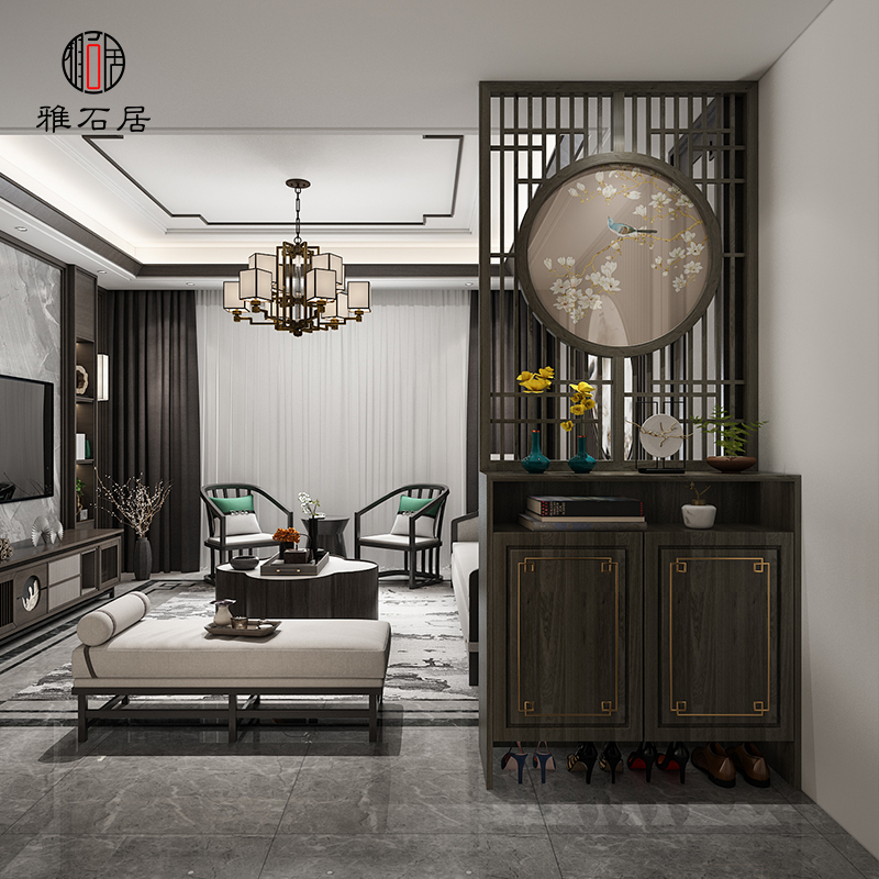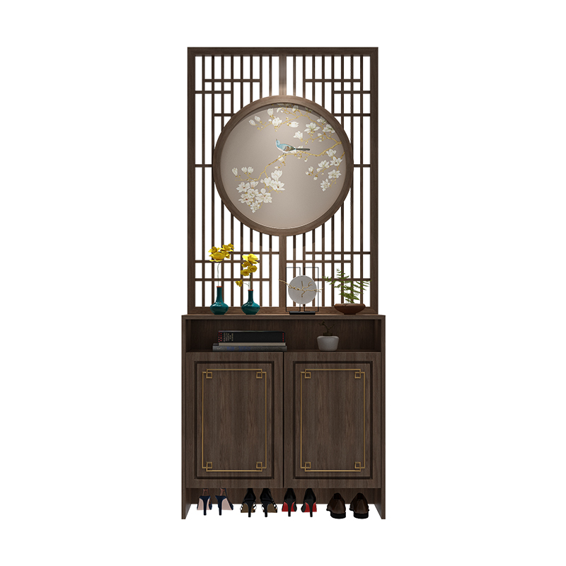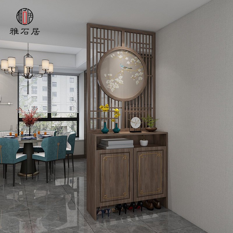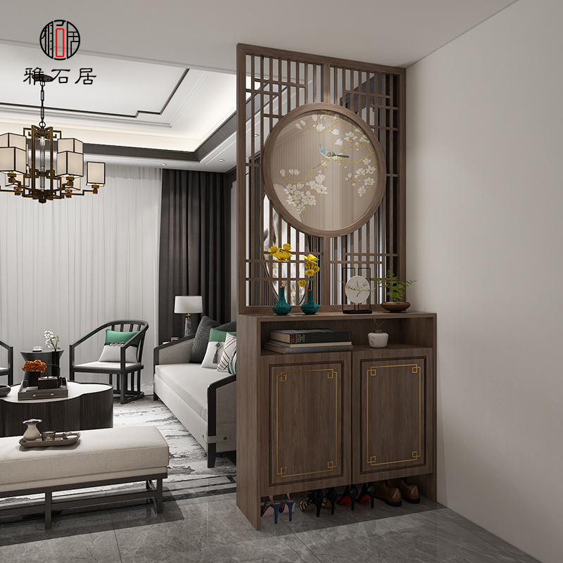 New Chinese Solid Wood Screen Partition Cabinet Decoration Living-room Entrance into the family Xuanguan Shoe cabinet Tea Room Fence Hollowed-out Creative Seat Screen