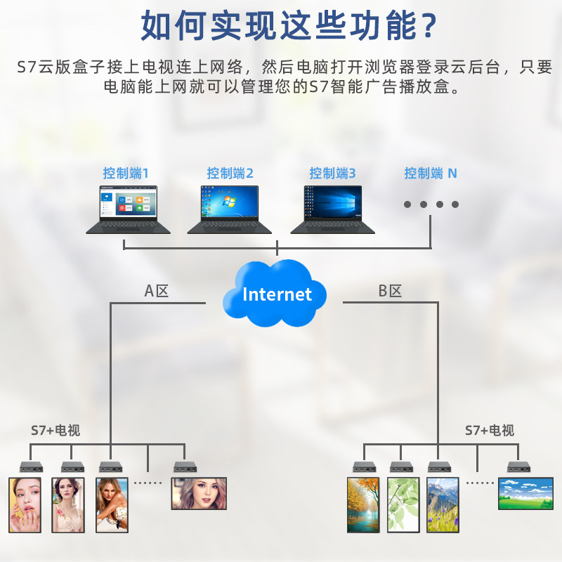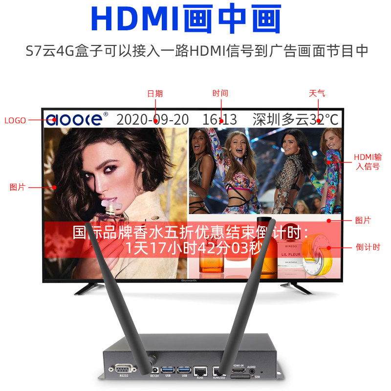 4G Cloud Background Internet Advertising Machine Player Box Multimedia Information Release System Remote Split Screen TV