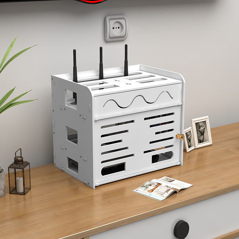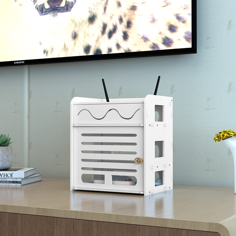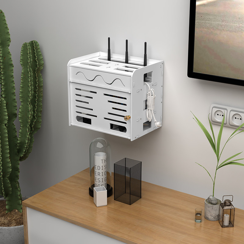 Router storage box upper box storage rack wall-mounted wire plug-in remote control storage box rack wifi storage box