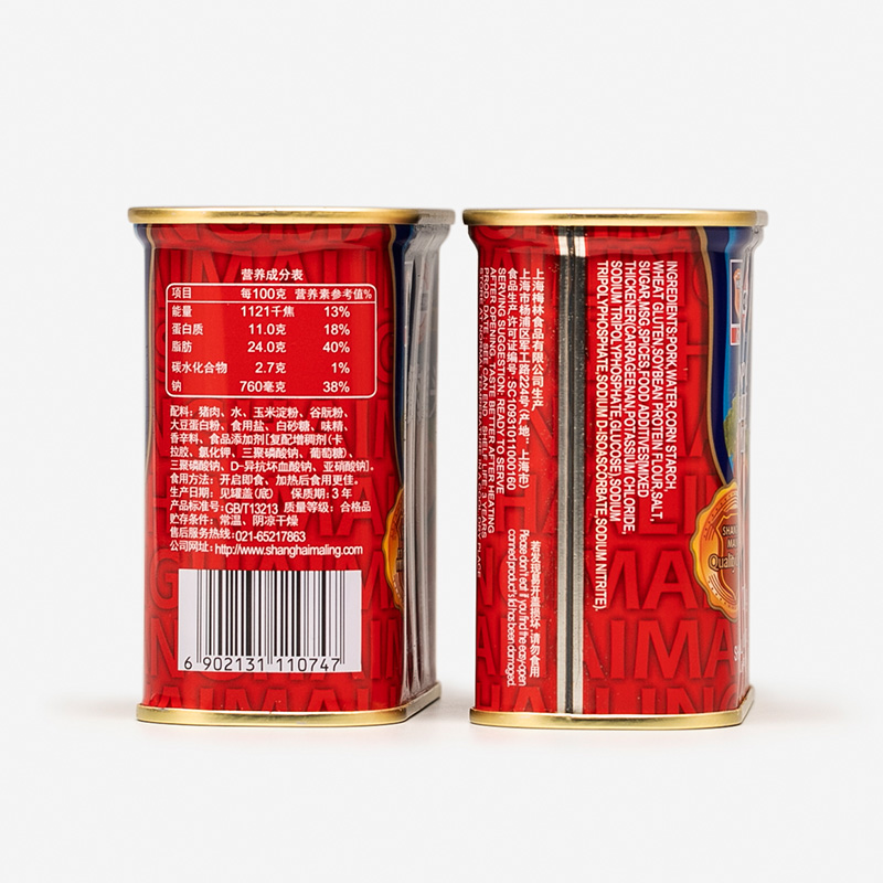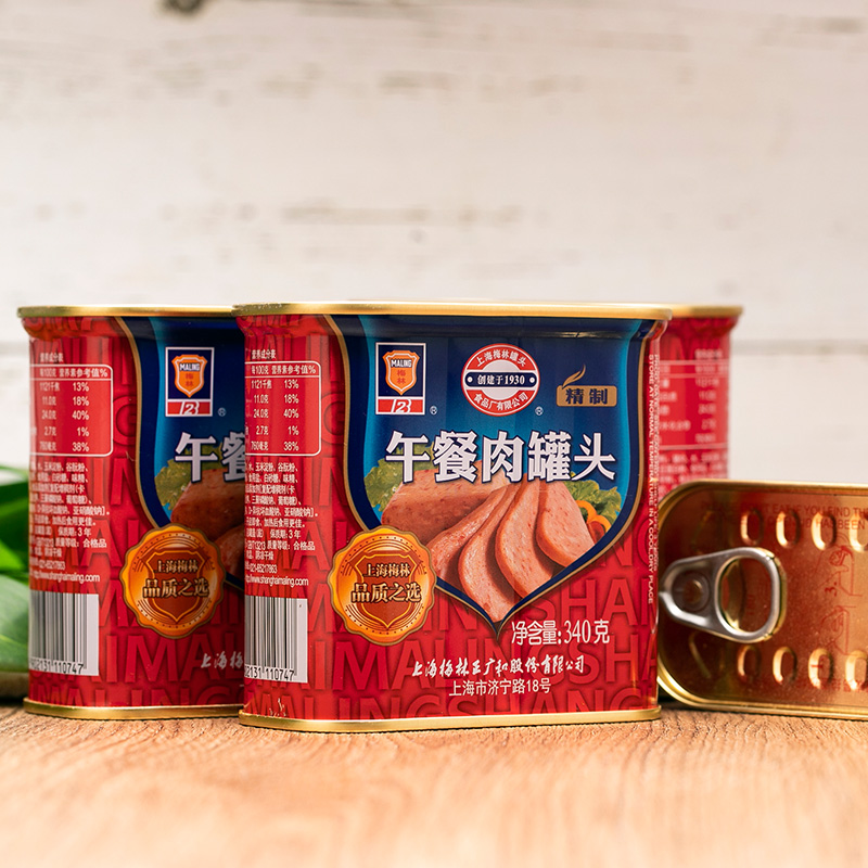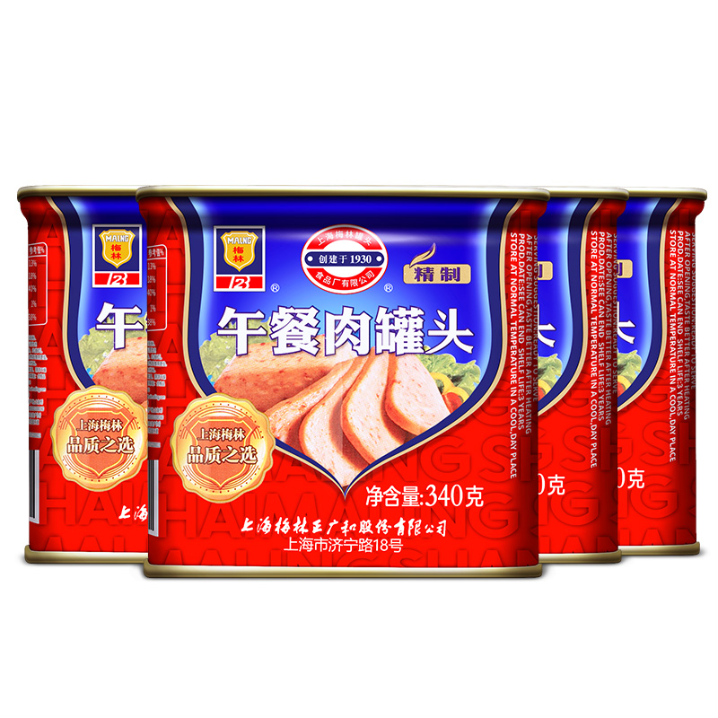 Shanghai Merlin Refined Afternoon Meal Meat Canned 340g * 4 cans pork Afternoon Meal Meat Refined Pork Sandwich Breakfast