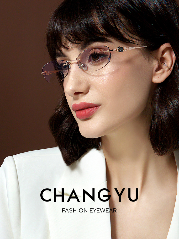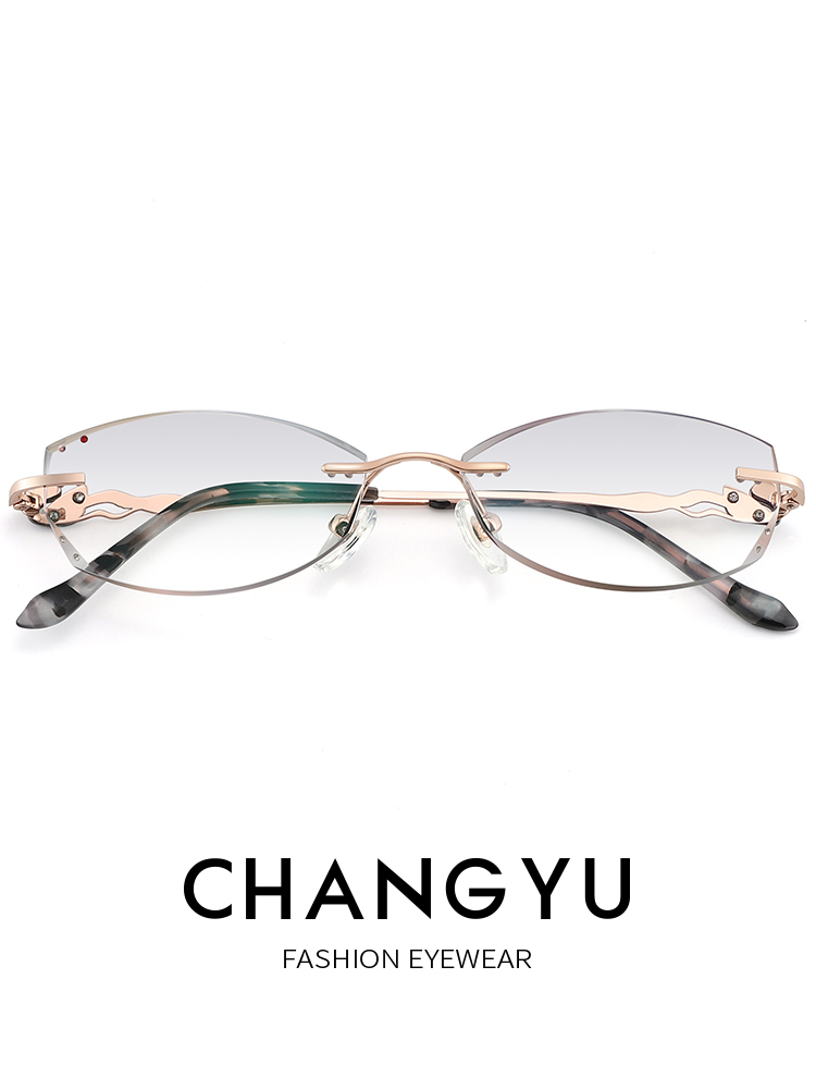 Myopia Glasses Female no frame diamond cut edge spectacle frame Han version Tide Eyewear Frames with finished product with one thousand Birds 8096