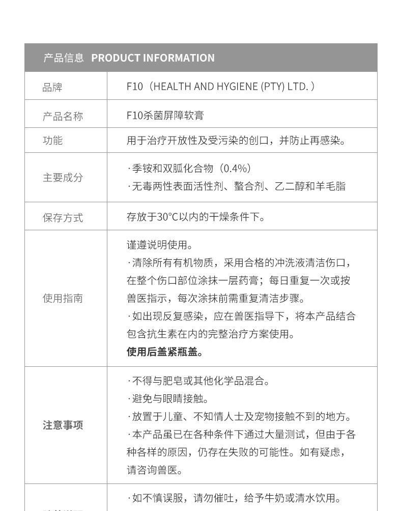 F10 barrier ointment sterilizing and anti-inflammatory multi-purpose cat and dog parrot wound infection trauma universal 25g