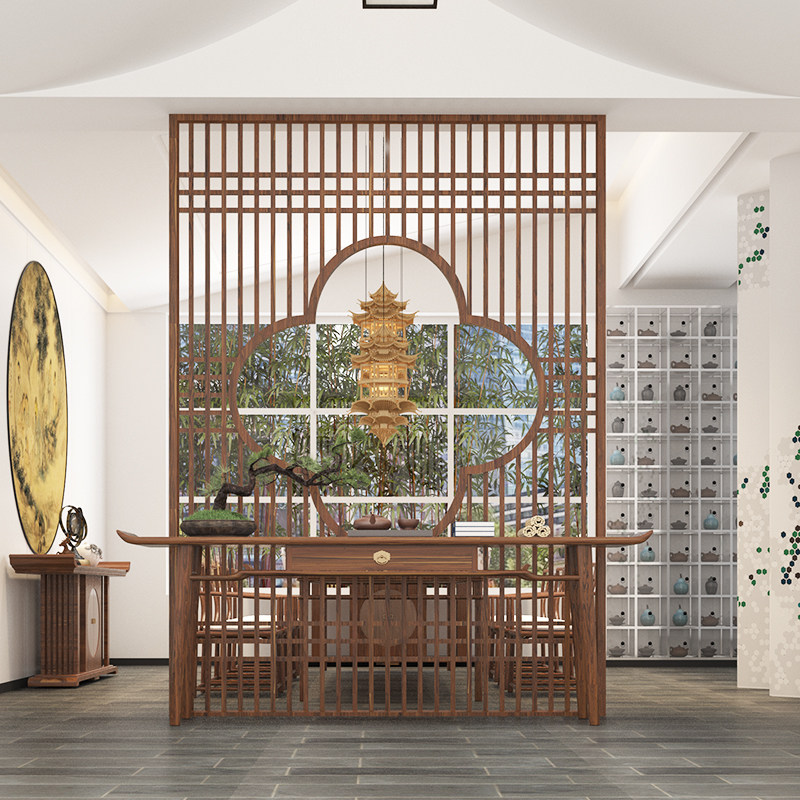 Modern new Chinese solid wood flower window partition Xuanguan Living room Fence Flower Type Screen Partition Hotel Lobby Screen