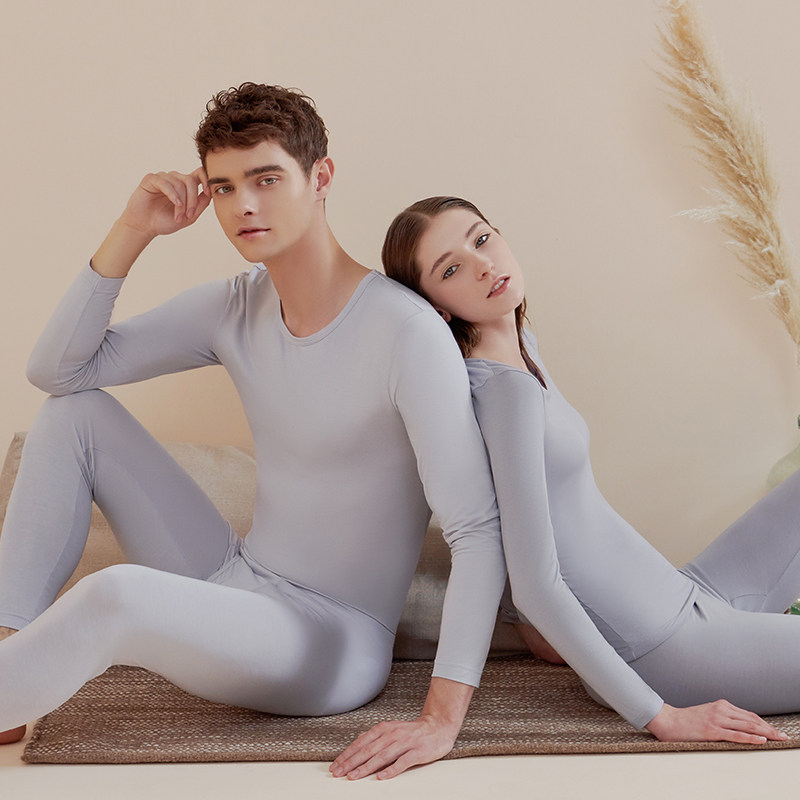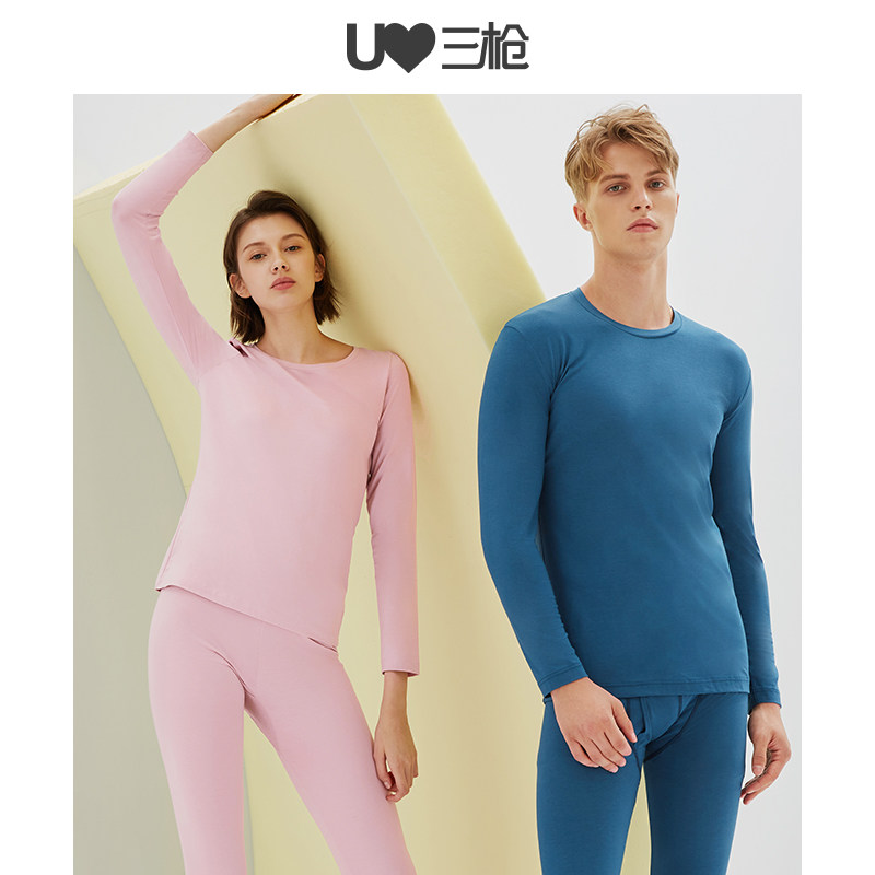 Three Guns Men And Women Fall Autumn Clothes Sanitary Pants Slim Fit Round Collar Lingerie Sanitary Pants Suit Shirts Inner Hitch Pants