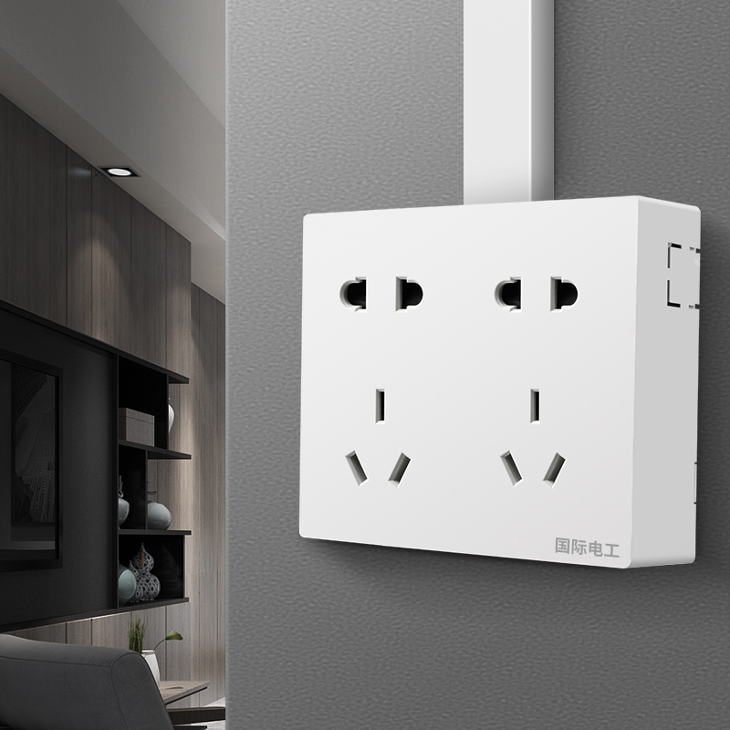 International Electrician Ming Fit Five Holes Socket Bright Line Wall Porous Home Ultra Slim with switch panel 100-hole socket