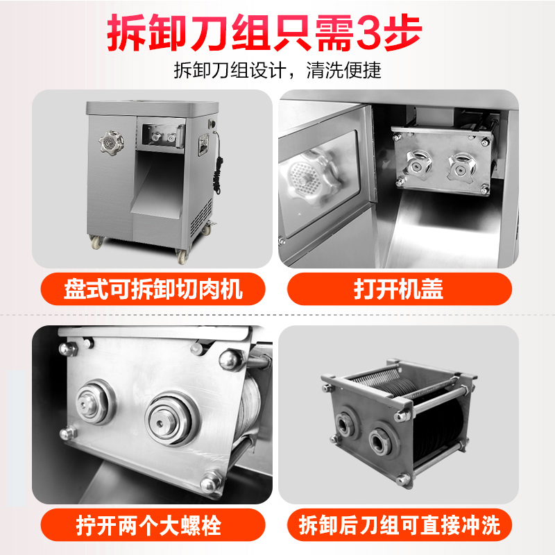 Meat grinder meat cutting machine commercial high-power meat machine three-use strong stainless steel large multi-functional slicing and shredding