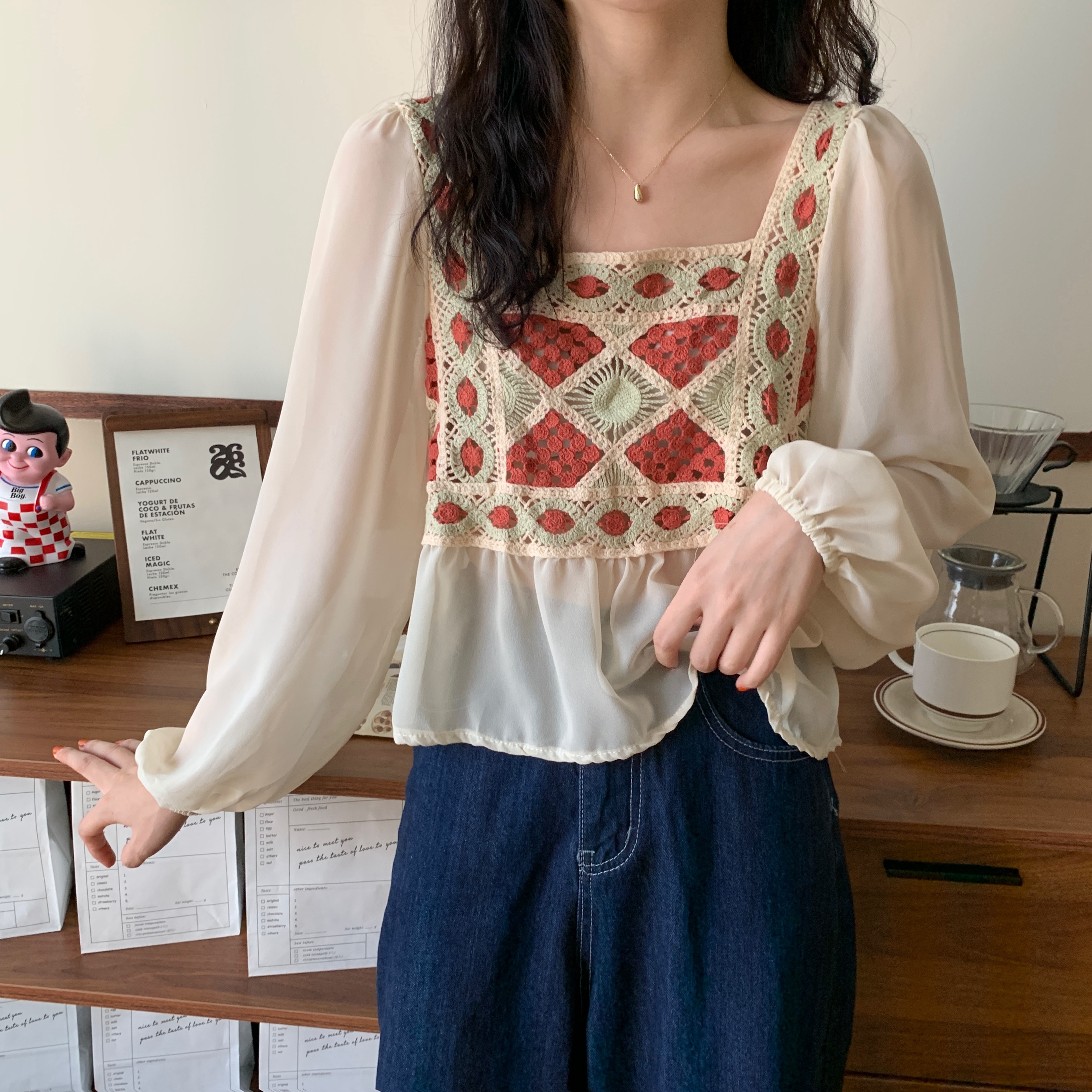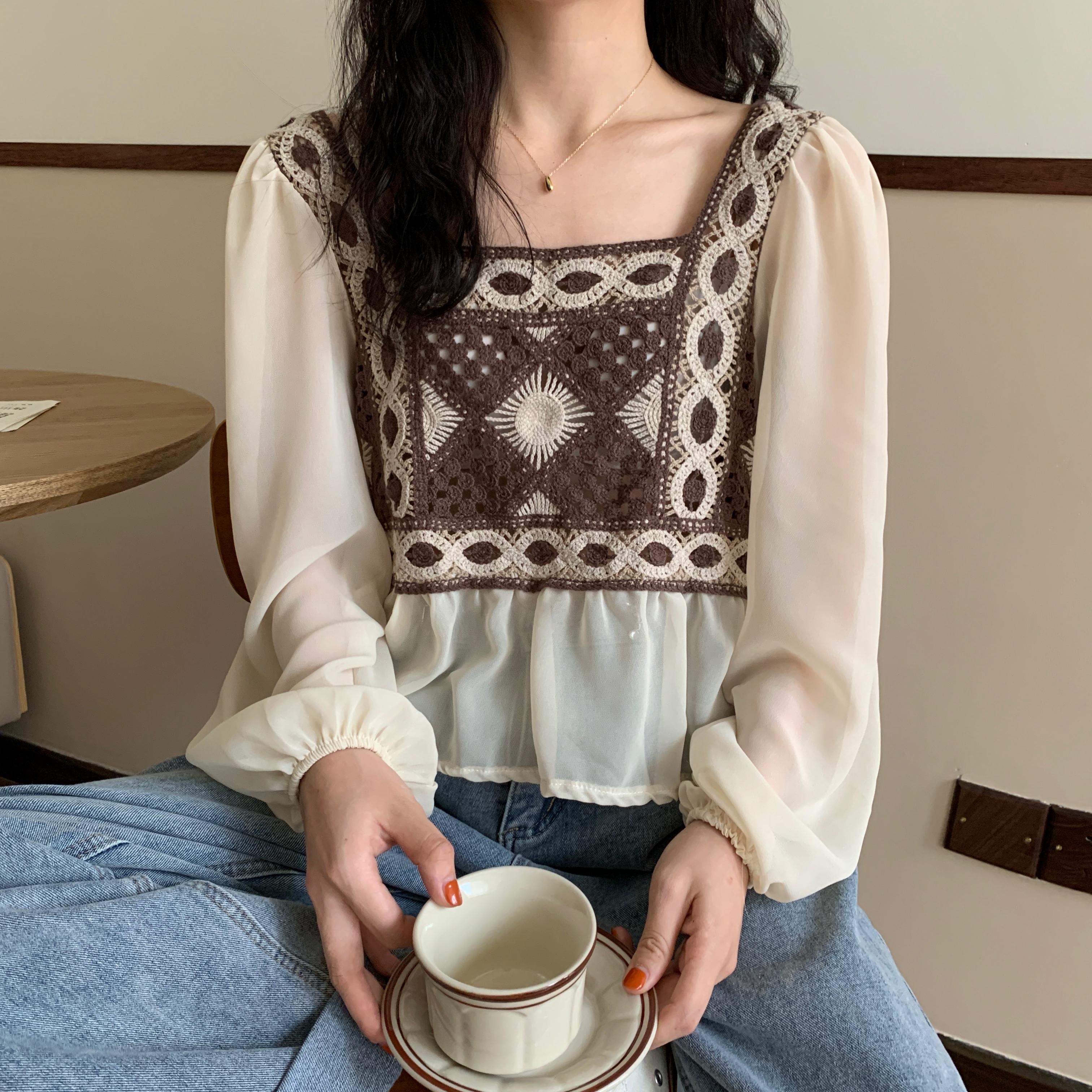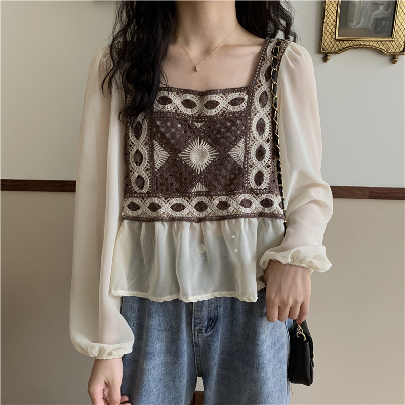 Temporary knitting snow spinning shirts Summer design sensitive crowdhook flower hollow chic beautiful shirt