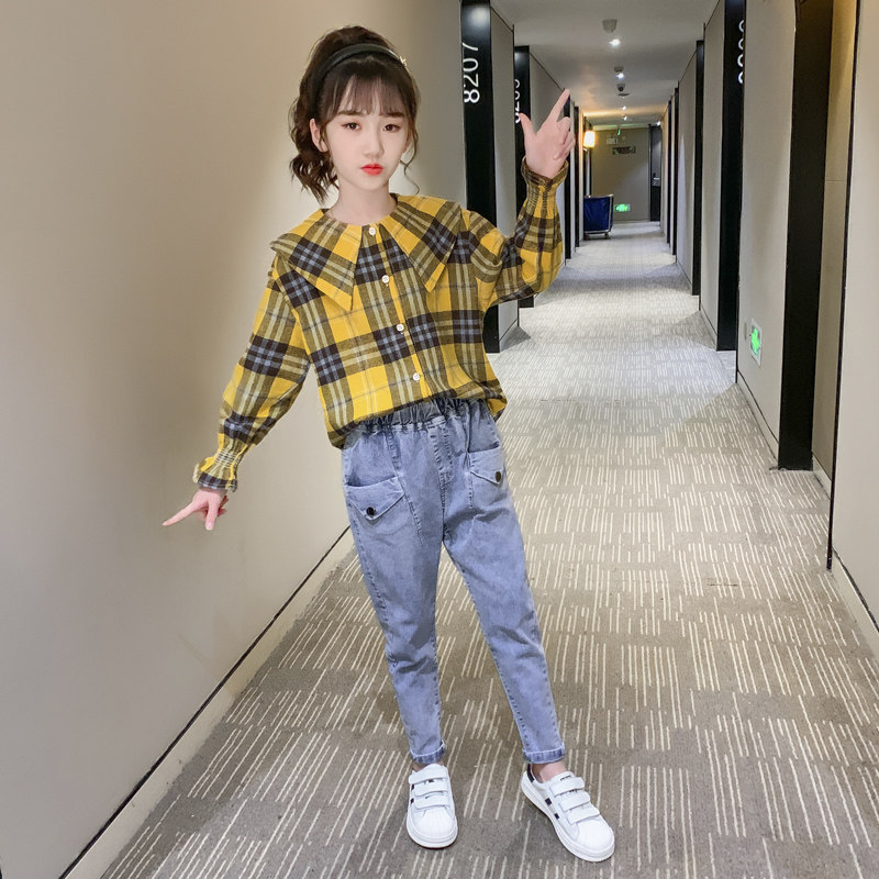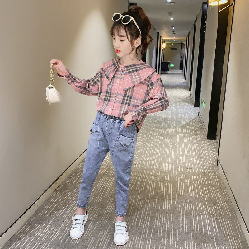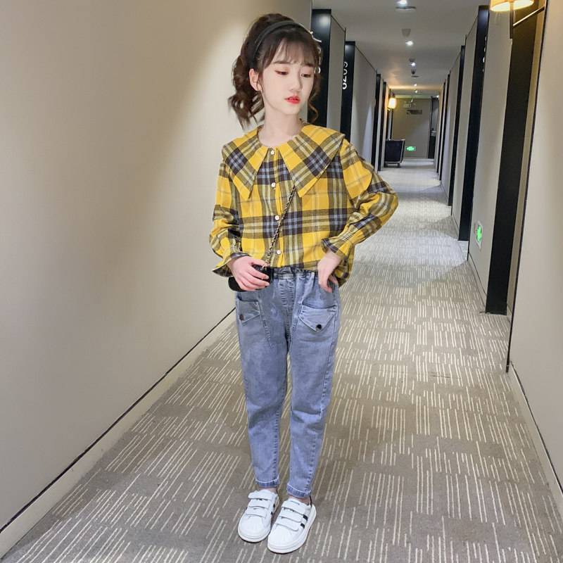 Girls plaid shirt long-sleeved spring and autumn Korean version of children's shirt foreign style top fashionable middle and big children's coat autumn clothing