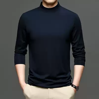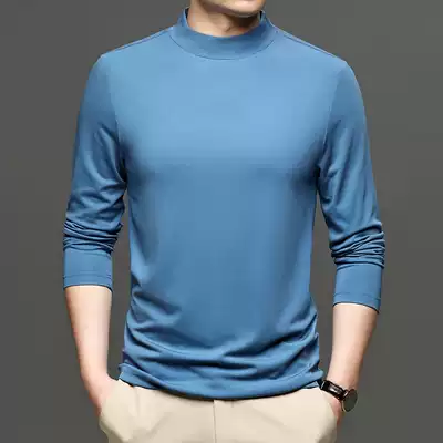 Han Boqi arch long-sleeved T-shirt men's spring and autumn new solid color half-height round neck top with mulberry silk bottoming shirt tide t
