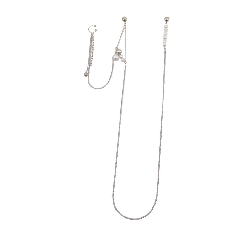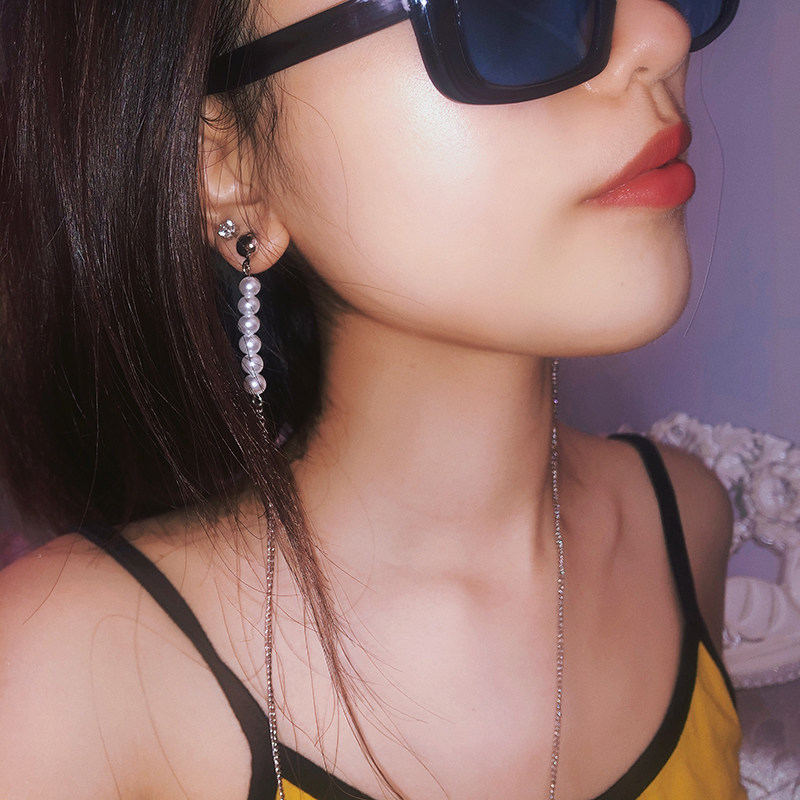 Euro-American fashion hot girl-style pearl water drill stream soda long-plate ear tip with ear decorative knot chain