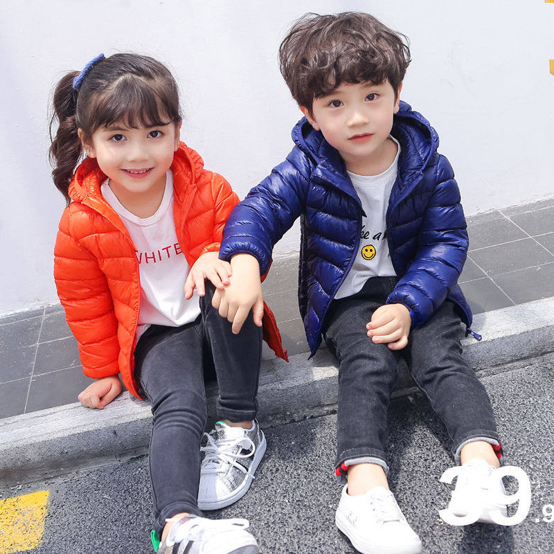 Children's clothing boys and girls 2022 new children's light and thin down padded jacket autumn and winter warm hooded jacket short section trendy