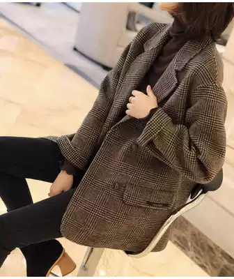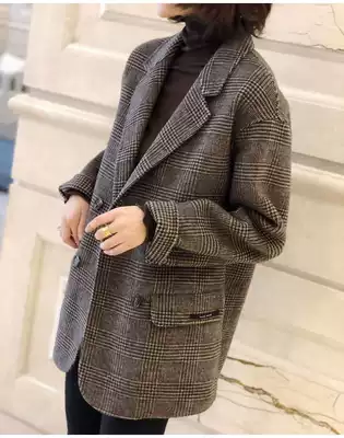 MAJE DVAWN design sense double-sided cashmere coat women 2021 New loose plaid woolen suit jacket