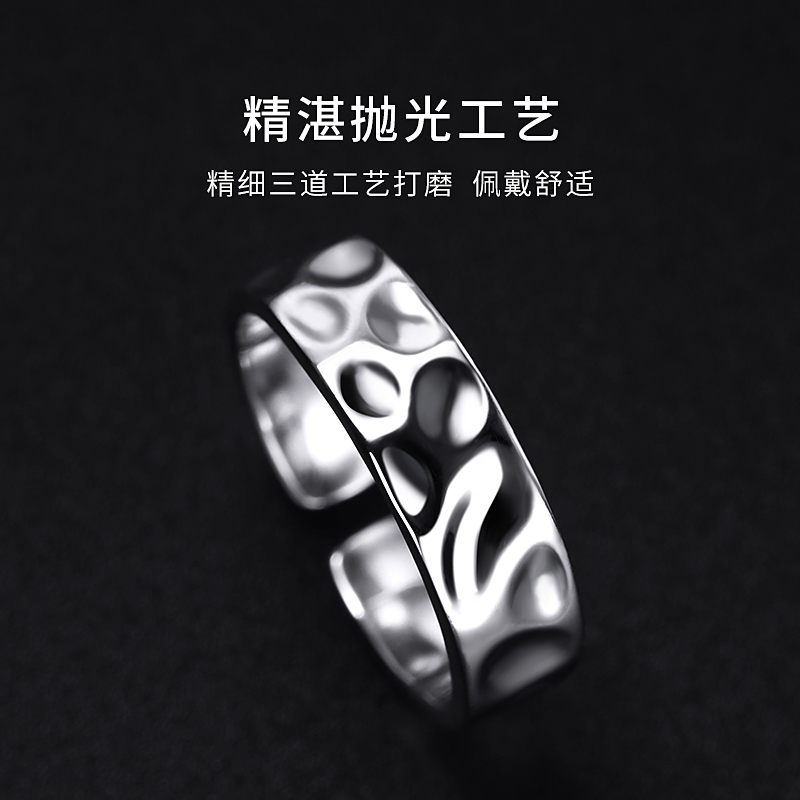 Ring Male Tide Individuality Pure Silver Single Withdrawal Wide Version Original Design Opening Forefinger Lettering Male Gift Giving Boyfriend