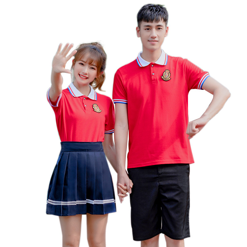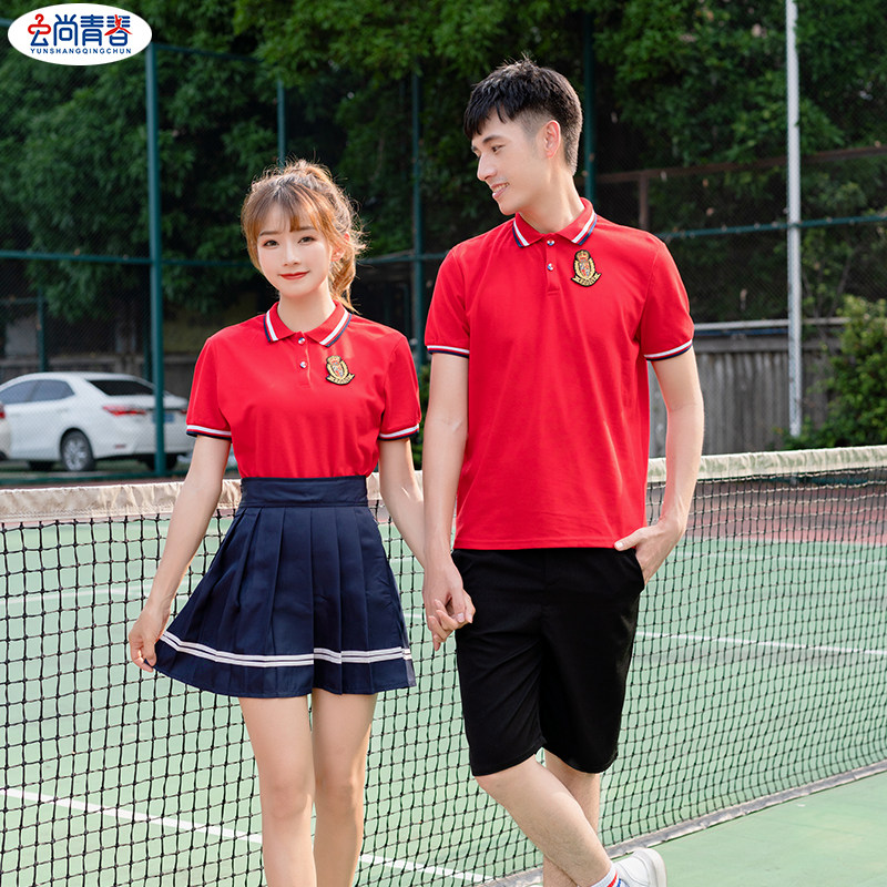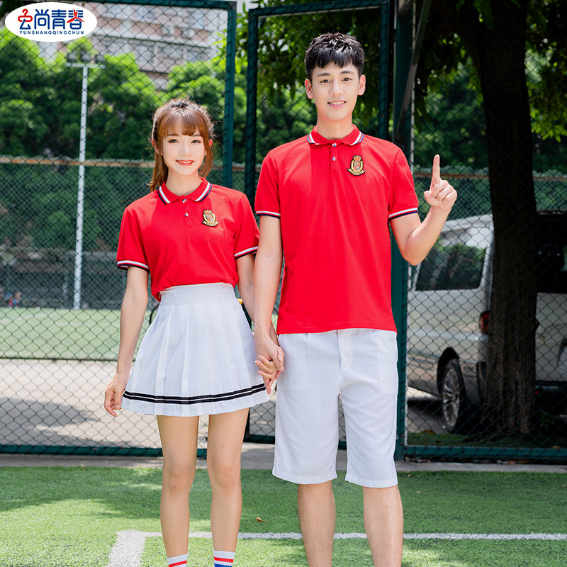 Men's white collar red T-shirt black shorts women's white collar red T-shirt hidden blue pants red T-shirt white collar red T-shirt white collar red T-shirt white pants dress man's pure red T-shirt black short