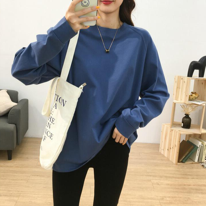 Korean version of the summer new round neck long version of the butt cover large size casual women thin short-sleeved T-shirt thin loose T-shirt