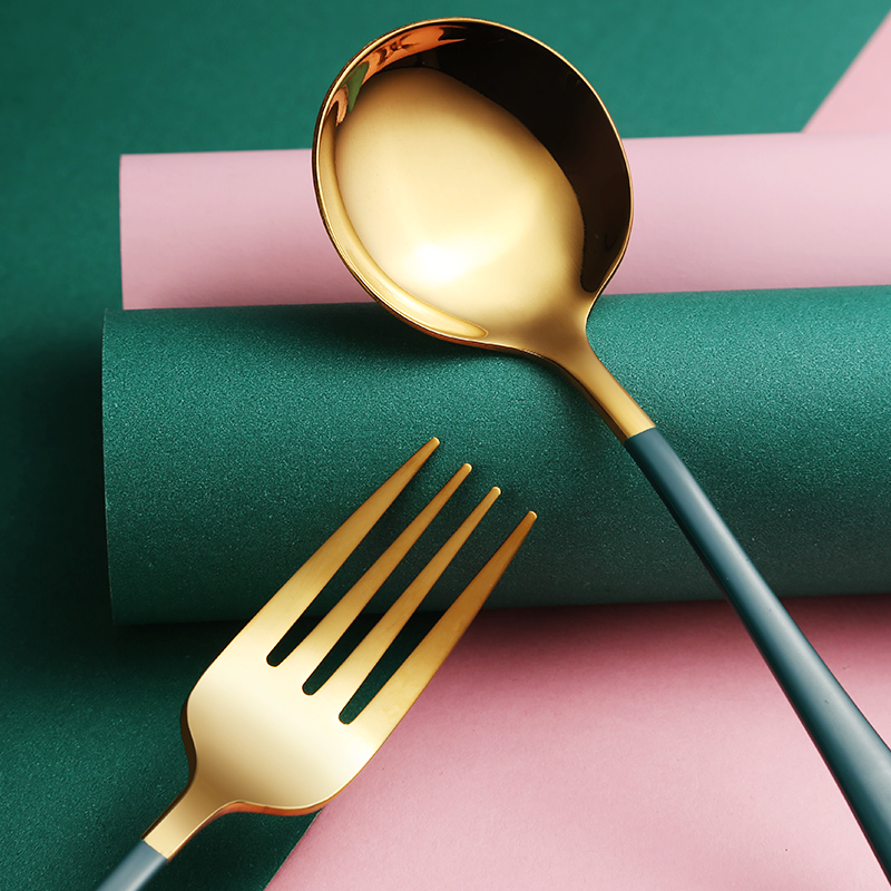A10 2 round spoon a gold A10 2 round spoon a powder gold A10 2 round spoon a dark green gold A10 2 round spoon a black gold A10 2 round fork a