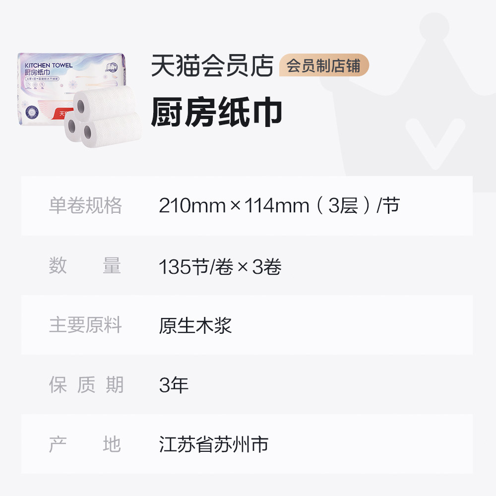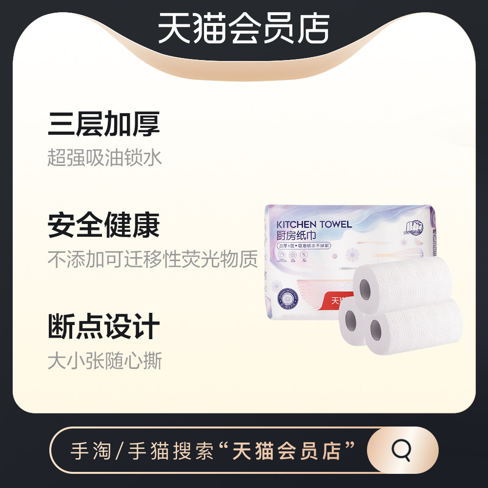 (Member customization)Kitchen tissue roll toilet paper 3 layers 135 sections 3 rolls of oil-absorbing paper Absorbent fried kitchen roll toilet paper