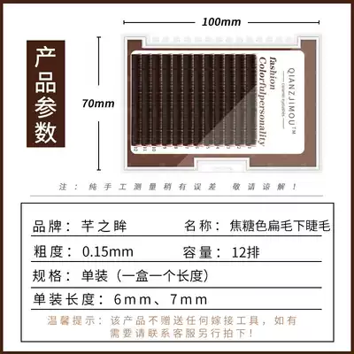 Caramel colored lower eyelashes grafted eyelashes single flat hair dark brown curry super soft natural 67mm own false eyelashes