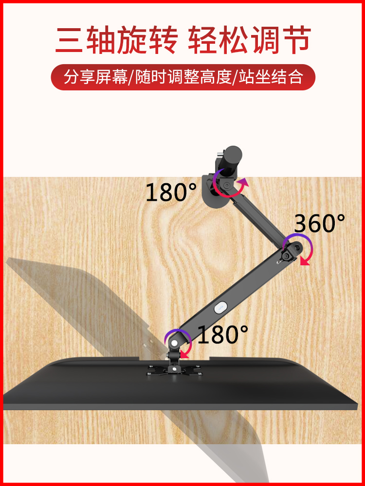 Display stand Desktop desktop computer screen shelf Universal arm bracket base Non-porous booster frame Metal