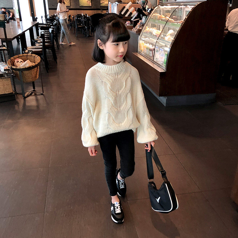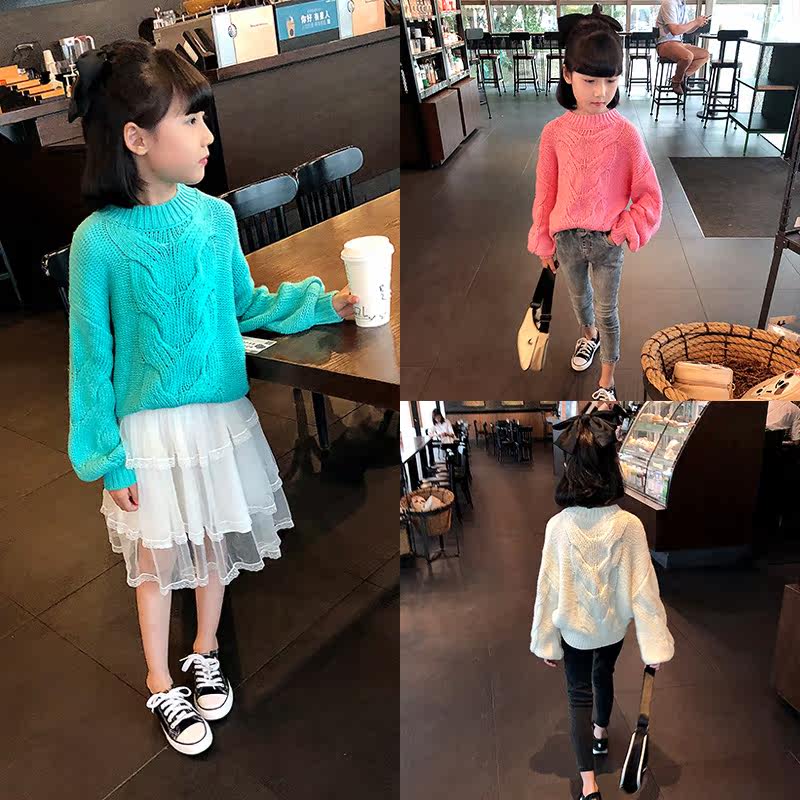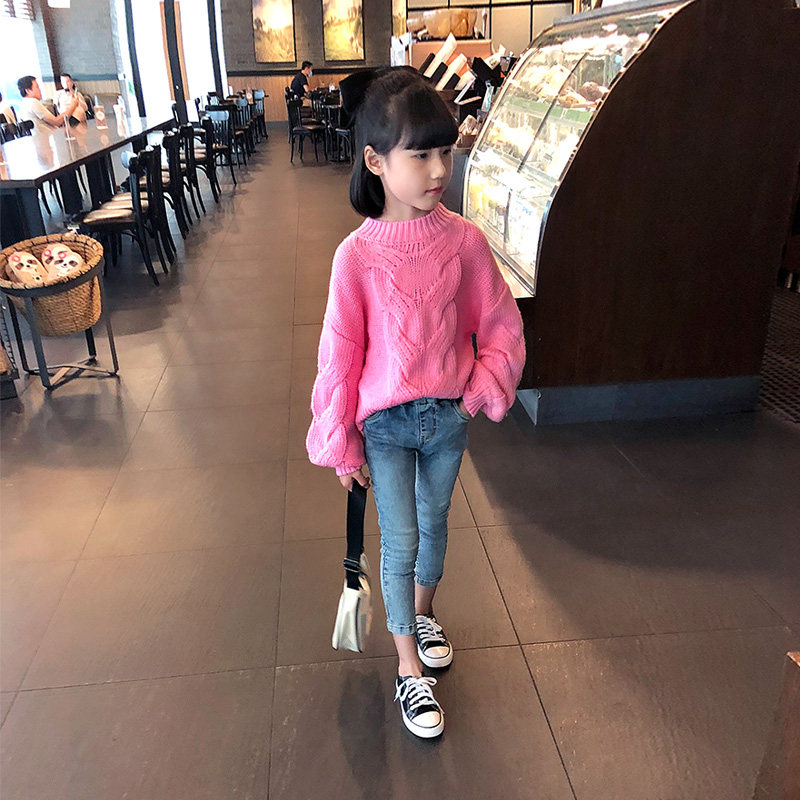 Girls Spring and Autumn Pullover Sweater New Baby Western Style Wool Loose Shirt Children's Lazy Wind Net Red Knit Sweater