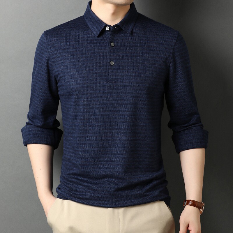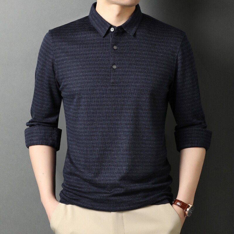 Fall new long sleeve T-shirt men's turtlenecks middle-aged business thin wool polo shirts Korean version of lap dads