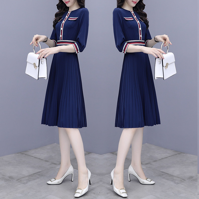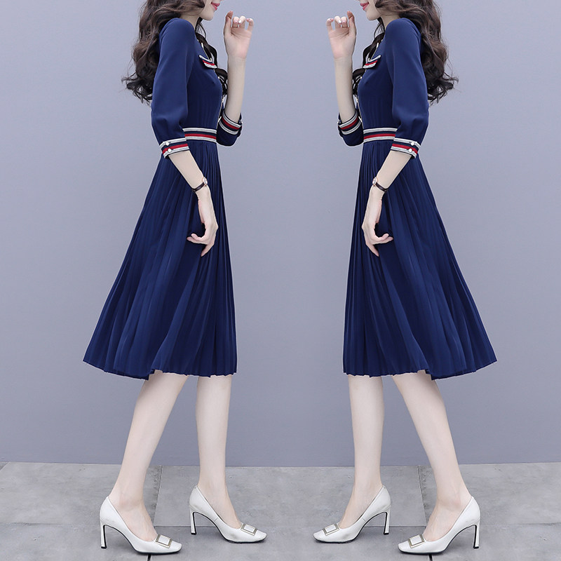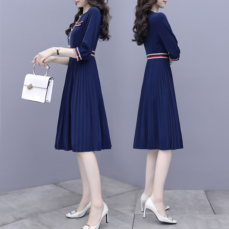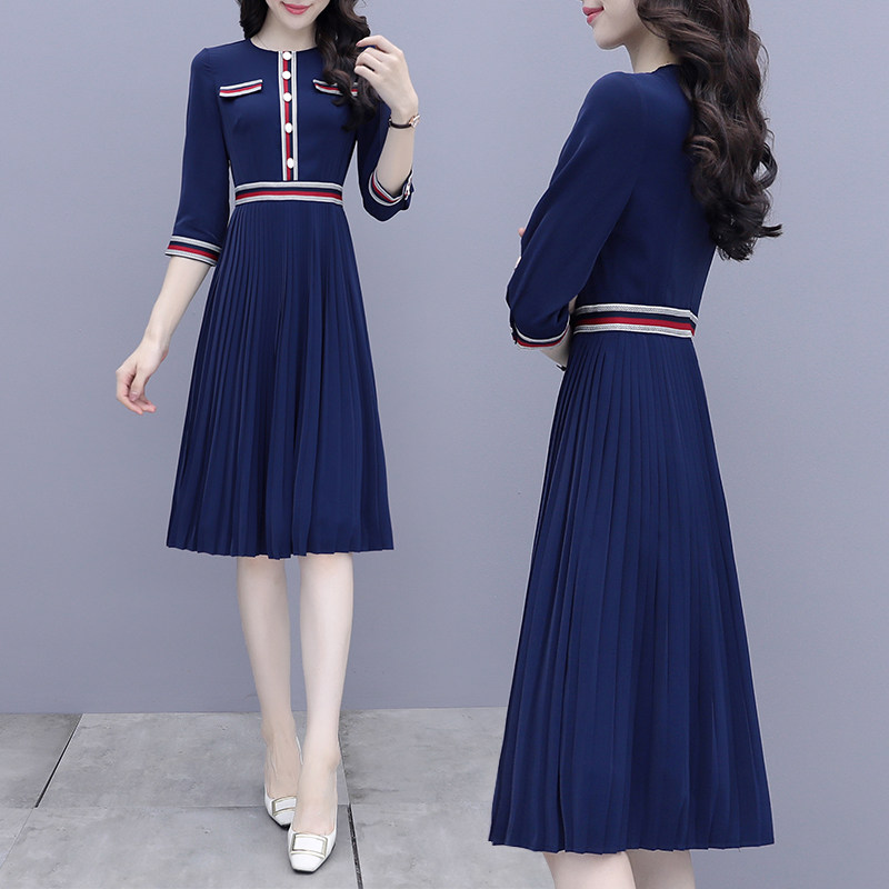 Small fragrance dress female spring dress 2022 new waist and thin Yuan high - end A - word fold skirt