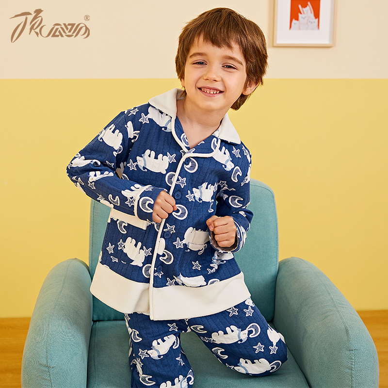 Top melon melon children sleeping clothes pure cotton spring and autumn long sleeves girl winter children CUHK children full cotton home clothes suit