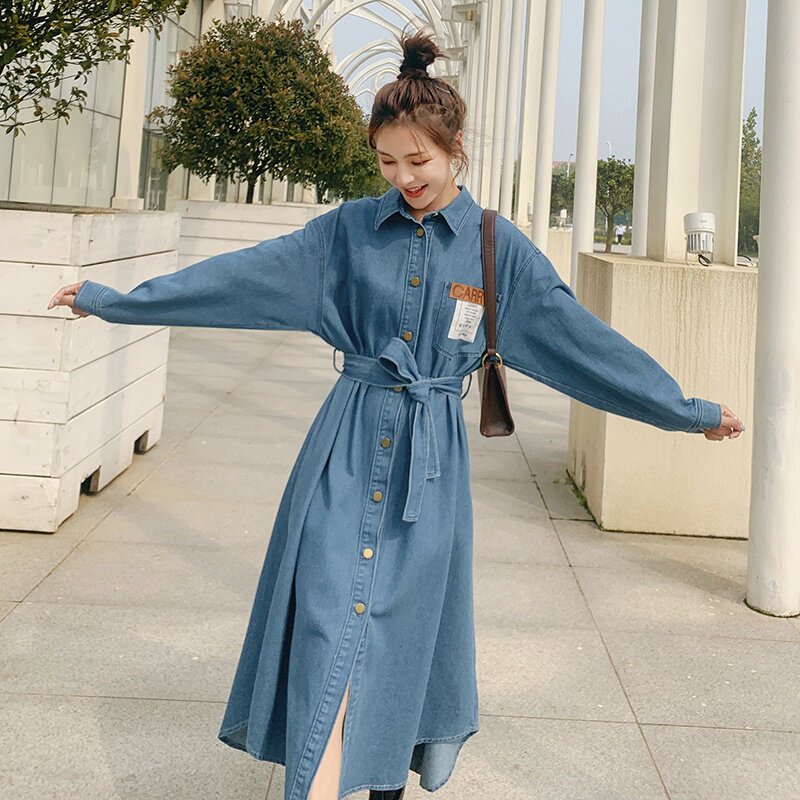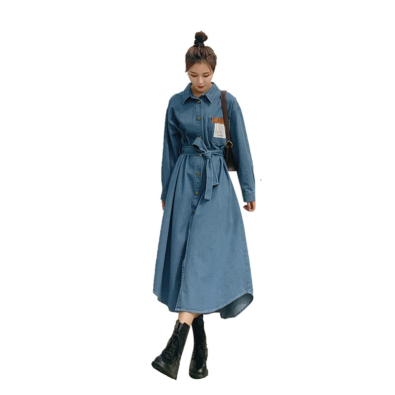 Maternity autumn dress women's mid-length version 2022 new Korean version of the trendy mother fashion temperament loose long-sleeved denim skirt