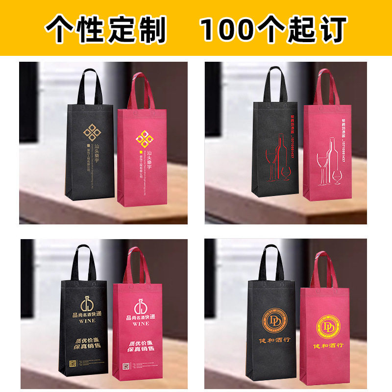 Double-branched wine bag with no woven red wine bag thickening gift bag double common alcohol packaging bag customized printing logo