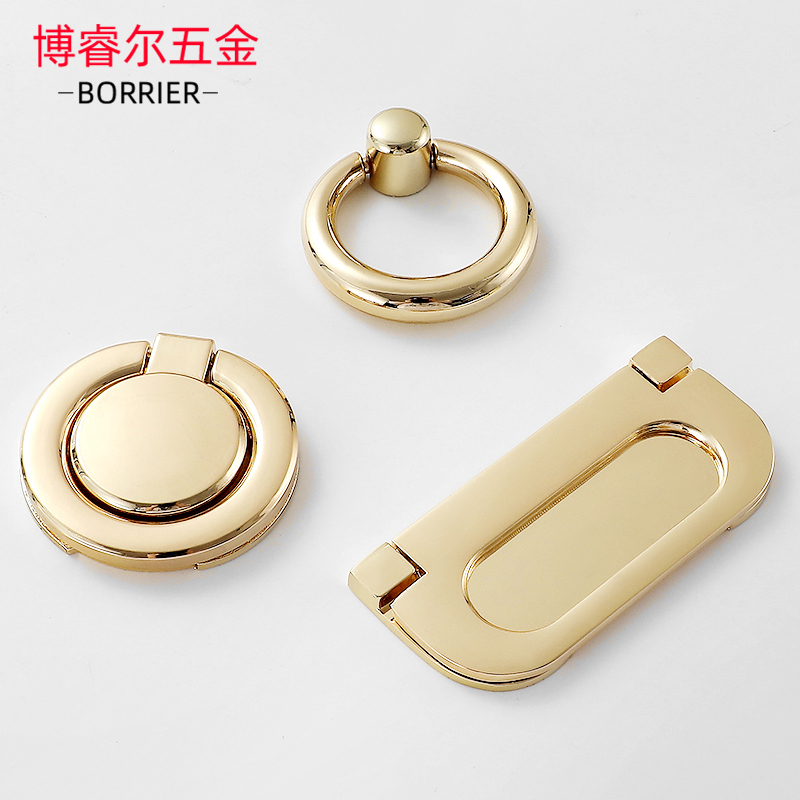 Cabinet door bright gold single hole drawer hanging pull ring cabinet wardrobe door handle modern minimalist light luxury invisible hidden handle