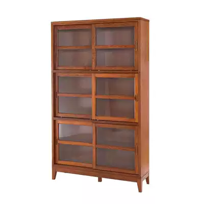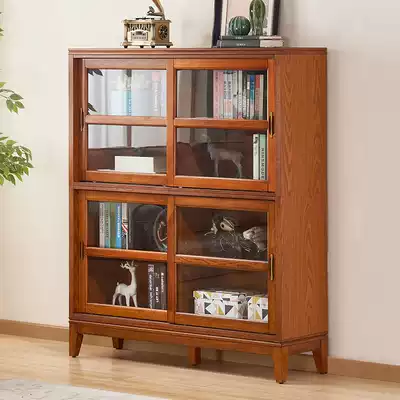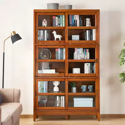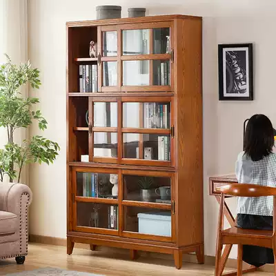 American solid wood bookcase with door glass door display cabinet living room storage locker floor sliding bookcase bookshelf