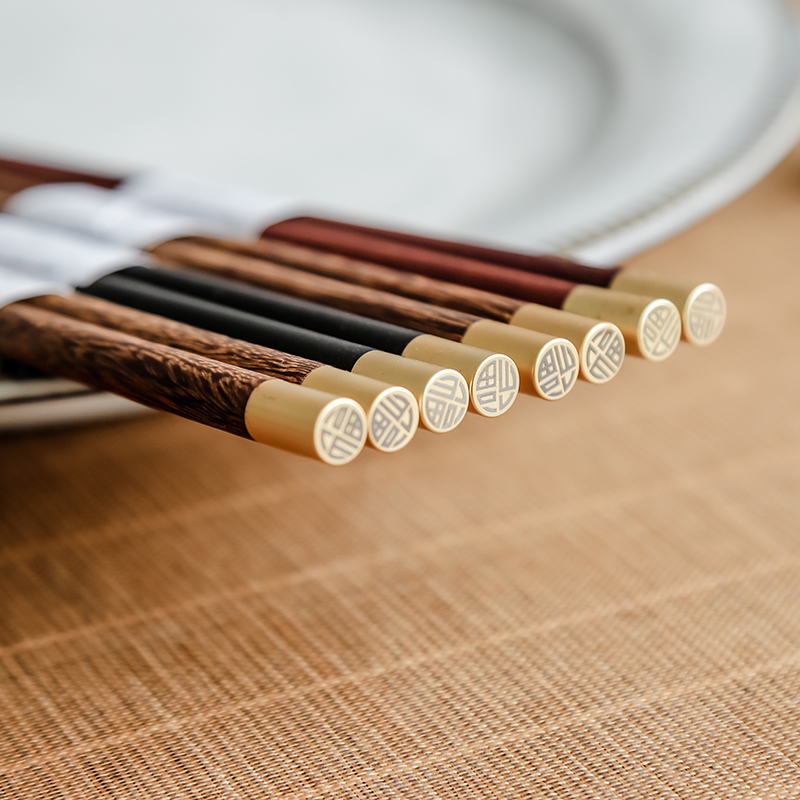 Two XH dining rooms Home Japanese style Round Head Solo Chicken Wings Wood Chopsticks China Wind Fu Characters No Lacquer No Wax