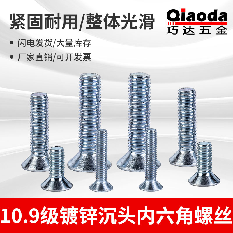 10 9 Class galvanized countersunk head hexagonal screw flat cup screw DIN7991 bolt M3M4M5M6M8M10