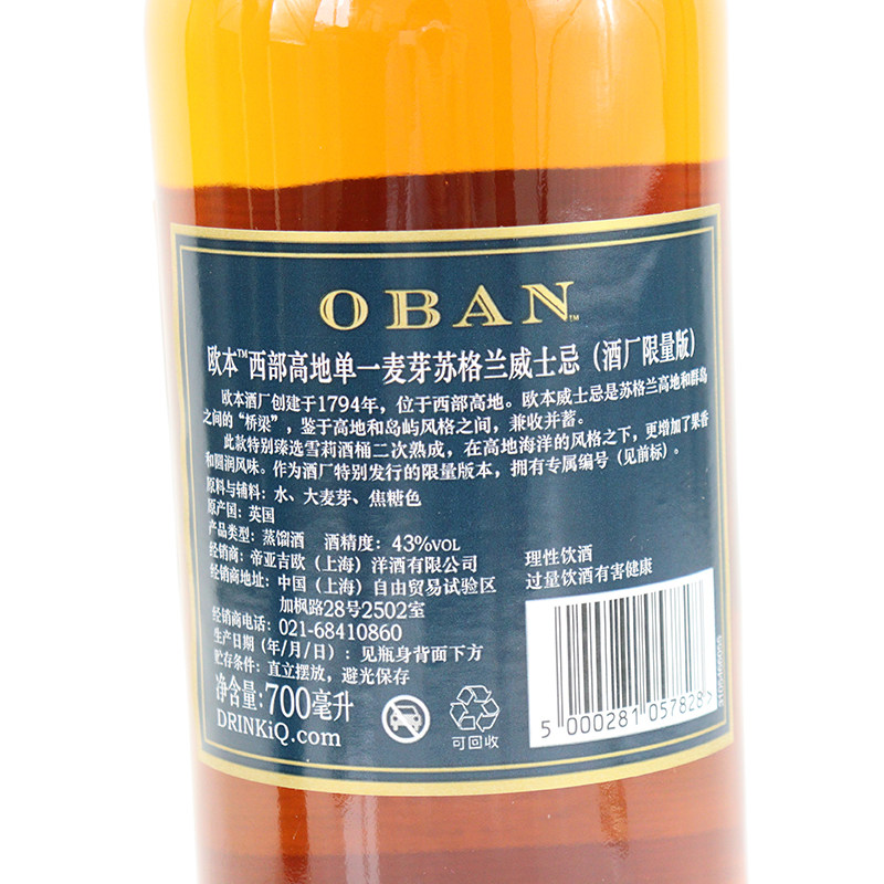 Foreign wine Oban ObenDE Western Highlands Single malt Scotch Whisky Distillery Limited Edition UK