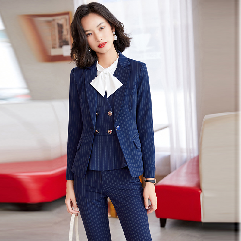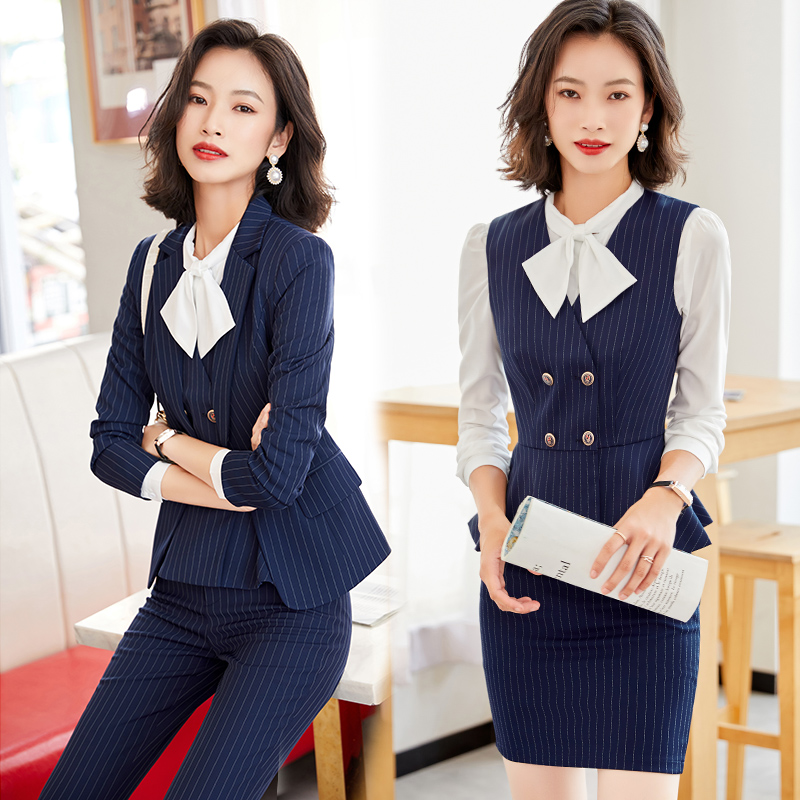 Blue striped vest, skirt, blue striped vest, pants, skirt, blue striped suit, pants, blue striped vest, skirt, white shirt, blue striped vest, pants, white shirt, blue striped suit, skirt, white shirt, blue striped suit. Pants, white shirt, blue striped suit, skirt, vest, white shirt, blue striped suit, pants, vest, white shirt, blue striped suit, pants, skirt, white shirt, blue striped suit, blue striped vest