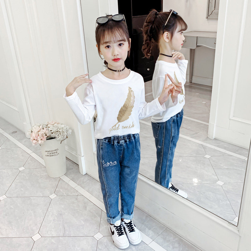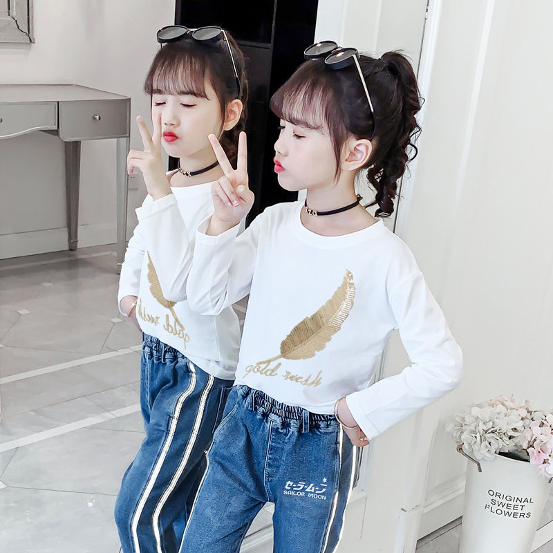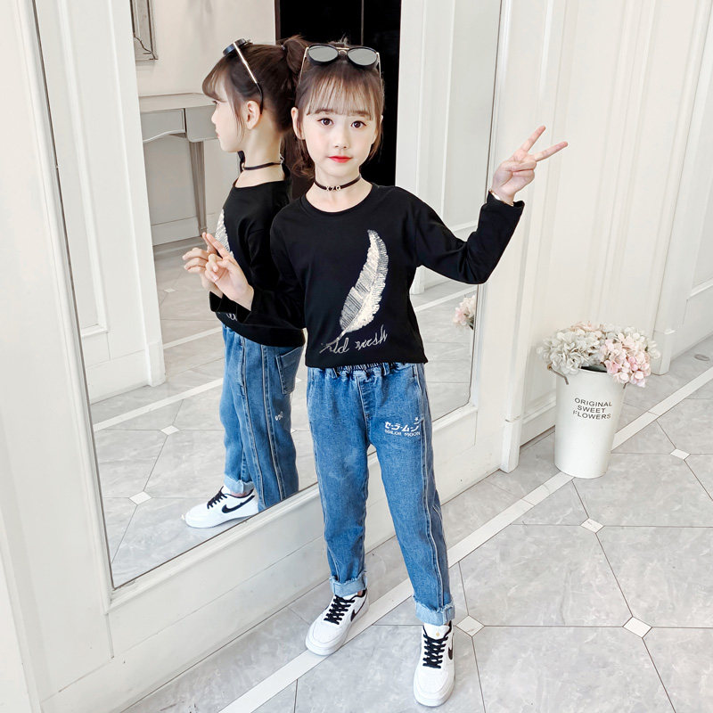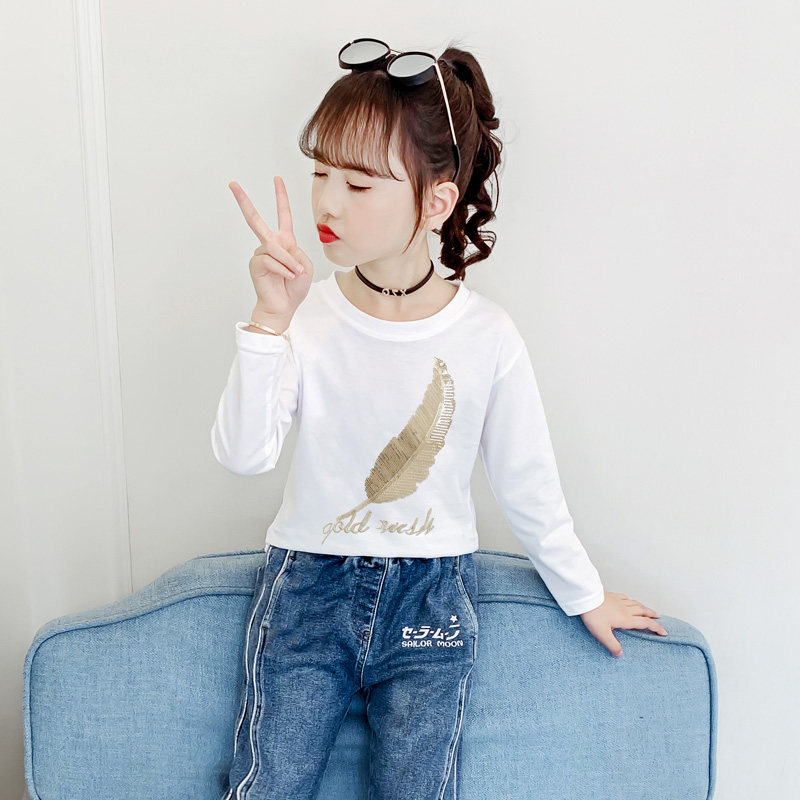 Girl Long Sleeve T-shirt Pure Cotton Spring Autumn CUHK Child Black Spring Dress Korean Version Foreign Pie Children's Undershirt Thin T