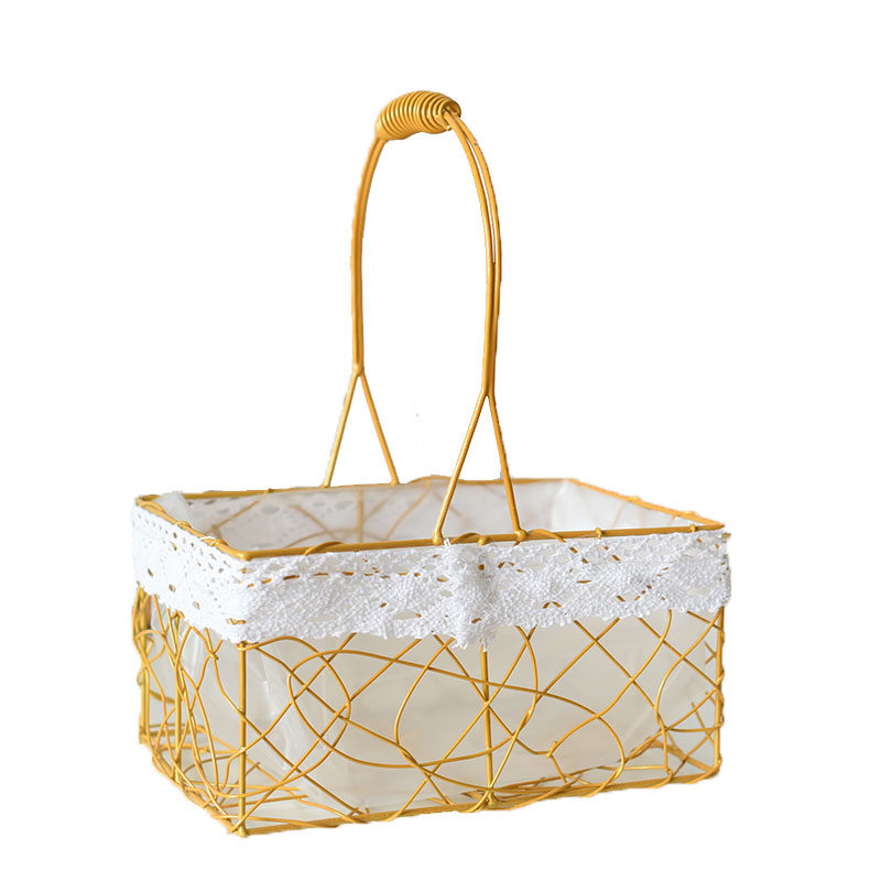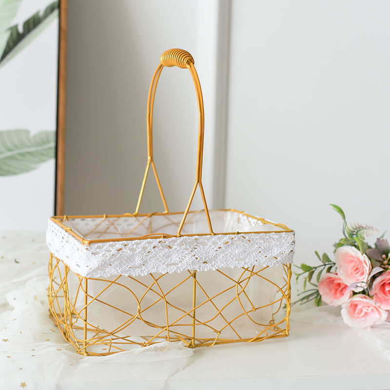 Gold Hand-held flower basket Tassel Lace Oval basket Shopping basket Woven rattan wrought iron mixed gift basket