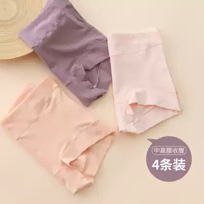 Underpants Women's Flat corner cotton middle waist belly boxers no trace antibacterial cotton crotch large size safety pants four-pack