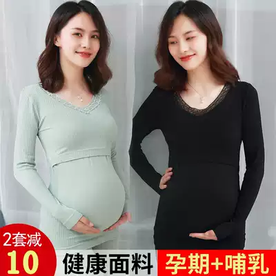 Pregnant women Qiuyi wei sheng ku set lactating postpartum lactation fa re yi Autumn lunar November sub-service pajamas Cotton Cotton