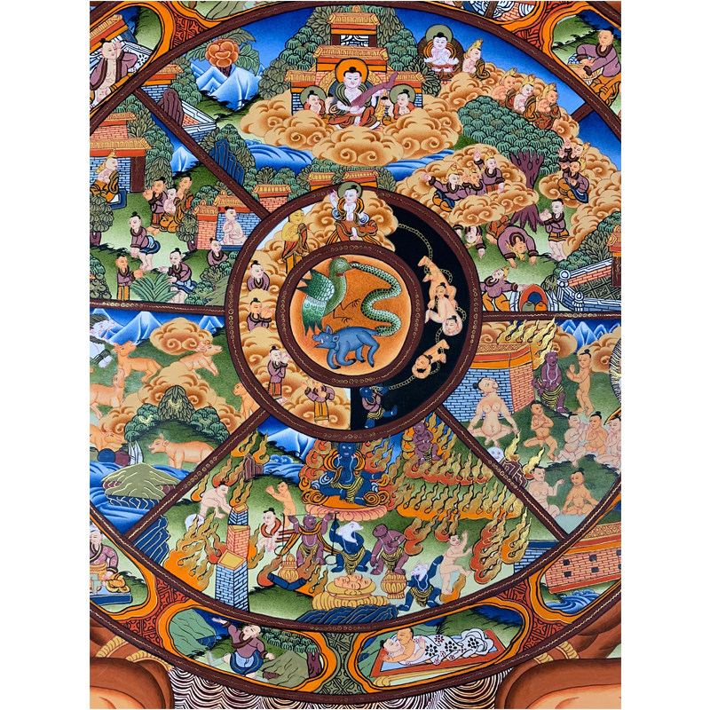 Nepal Tangka Six Road Wheels Back Altar City Pure Hand Painted Pure Handmade Tibetan Tangka Hanging Painting Home