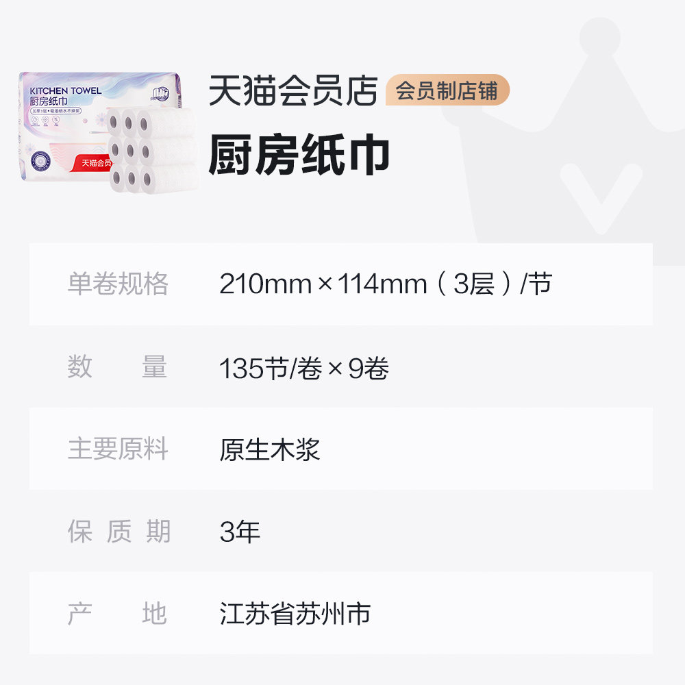 (Member customization) kitchen paper roll paper 3 layers 135 sections 9 roll kitchen paper towel oil absorbent paper absorbent oil frying