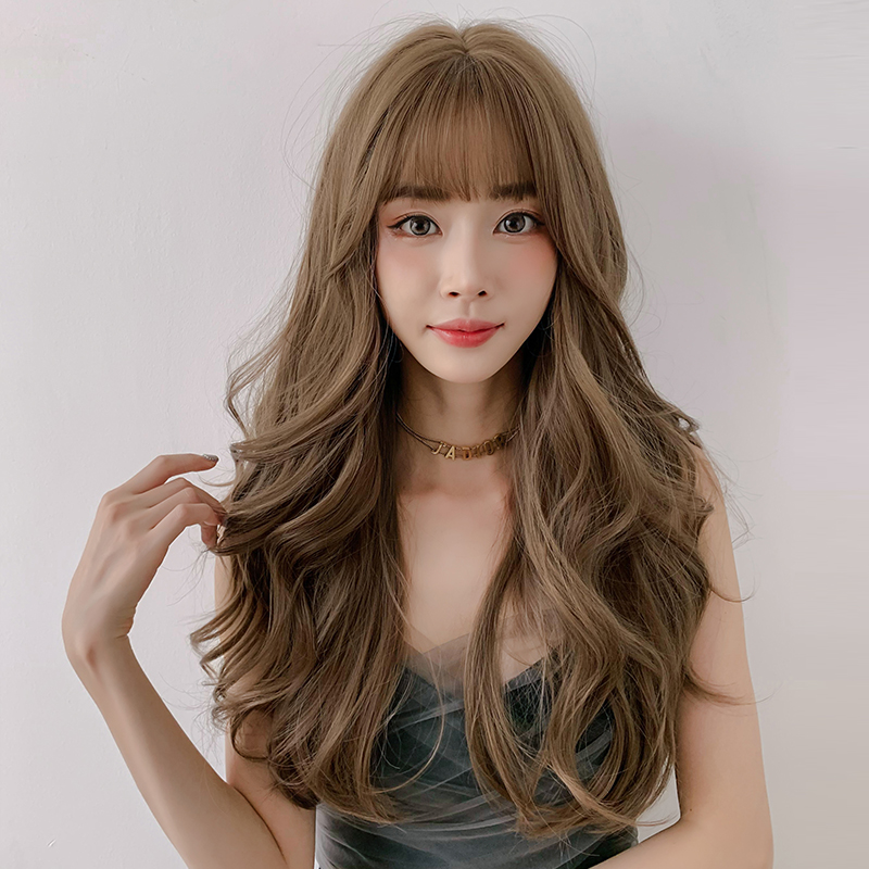 Wig woman long hair large wave length curly hair natural fashion air Liuhai mesh red cuddles adorable with full head cover