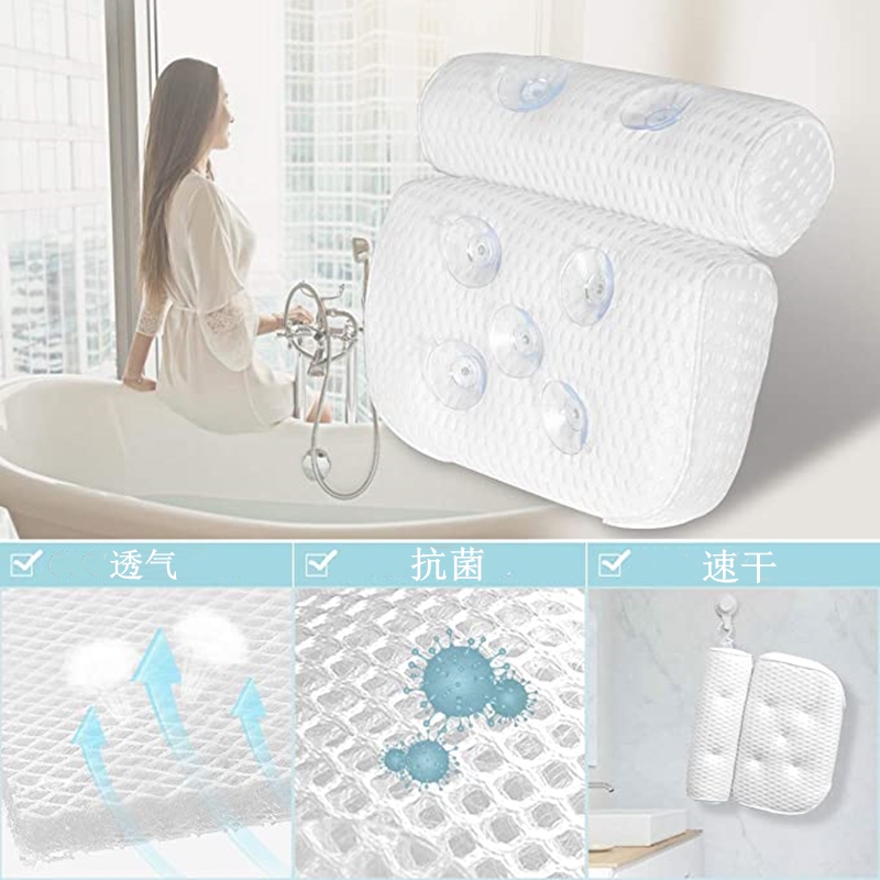 4D bath pillow bathtub pillow close to pillow waterproof neck with suction cup bathtub anti-slip cushion outlet thickened soak pillow-Taobao