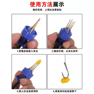 Red worm clip Fishing supplies Fishing gear accessories Baiting device Copper chuck earthworm live bait clip hook device hanging rubber band
