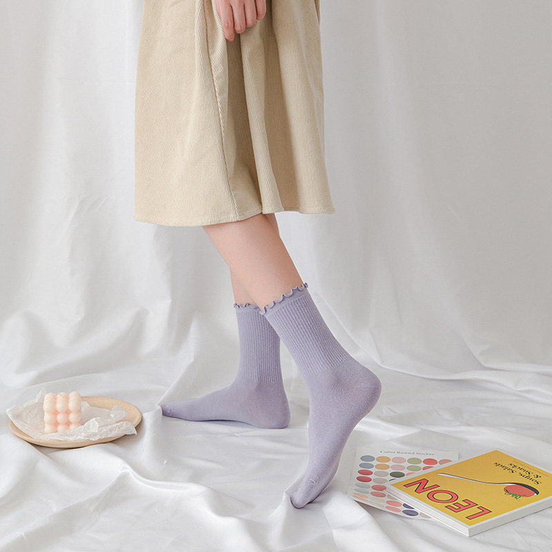 Nut mummy wood ear candy color socks female ins tide solid color bubble socks Korean Japanese color tube socks