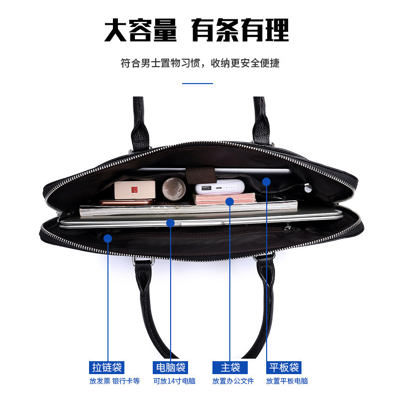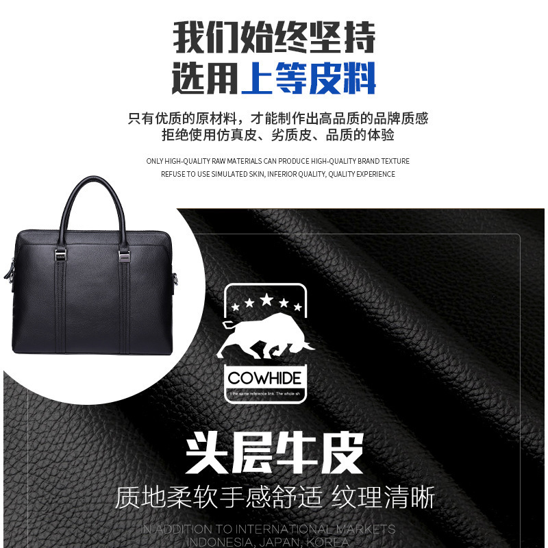 New Men's Bags Genuine Leather Briefcase Men's Business Top Layer Cowhide Handbag One Shoulder Hand Messenger Bag Men's Bag