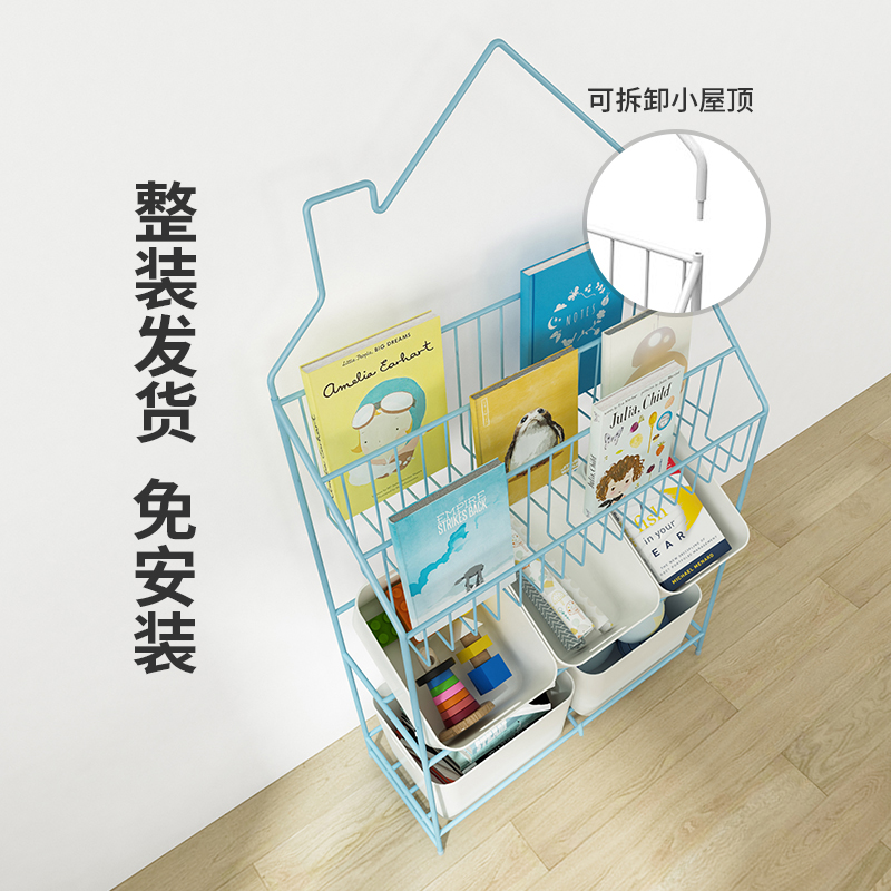 Large-capacity toy storage shelf children's bookshelf iron picture book shelf baby shelf kindergarten household artifact