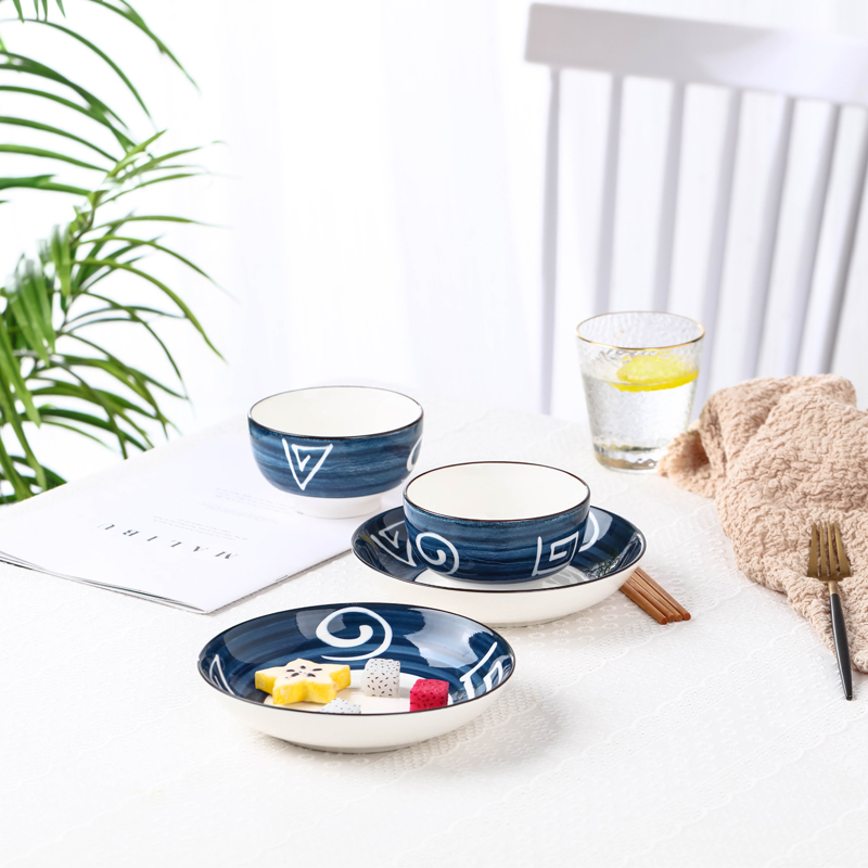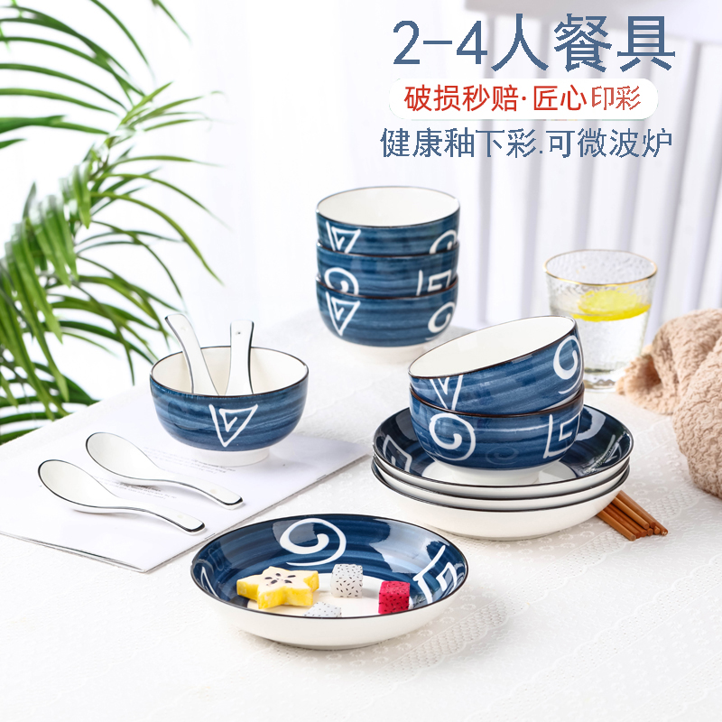 Household dishes set 2-4 people use Japanese rice bowl personality creative ceramic tableware set student Bowl combination